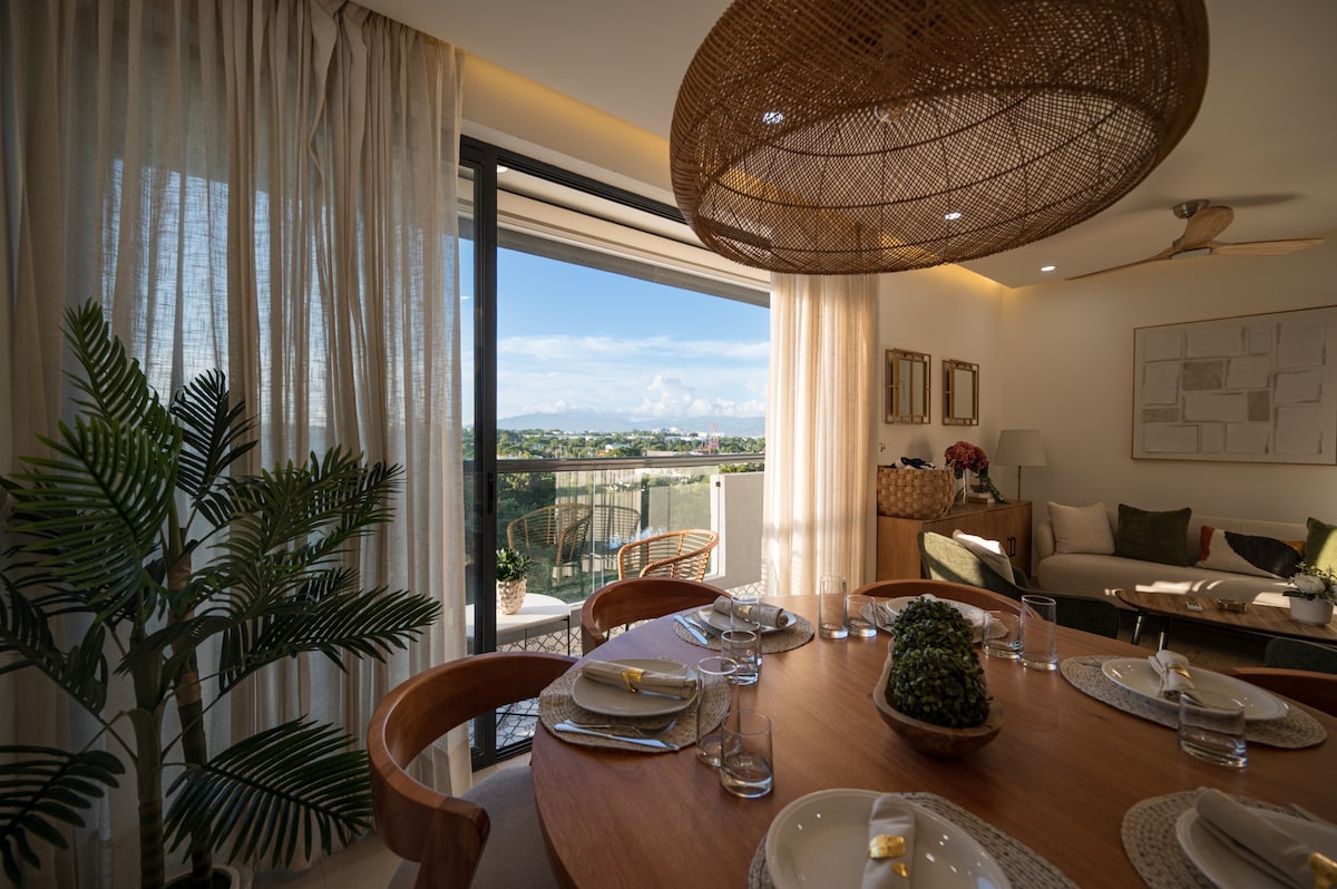 Ang bagong apartment na ito ay ang perpektong pamamalagi para sa isang pamilya at mga kaibigan na bakasyon. Matatagpuan ito 10 minuto mula sa Paliparan ng Santiago, na puno ng mga amenidad, at kumpleto ang kagamitan. May 3.5 banyo, 3 silid - tulugan na may A/C at silid - tulugan ng bisita na may twin bed, bentilador at sariling banyo. kumpletong kusina, Dalawang sala,A/C, Dalawang 50" Smart TV, Bluetooth Speakers at dalawang paradahan. Masisiyahan ka rin sa paligid ng complex tulad ng, palaruan, pool, event room, lawa, at sport court.