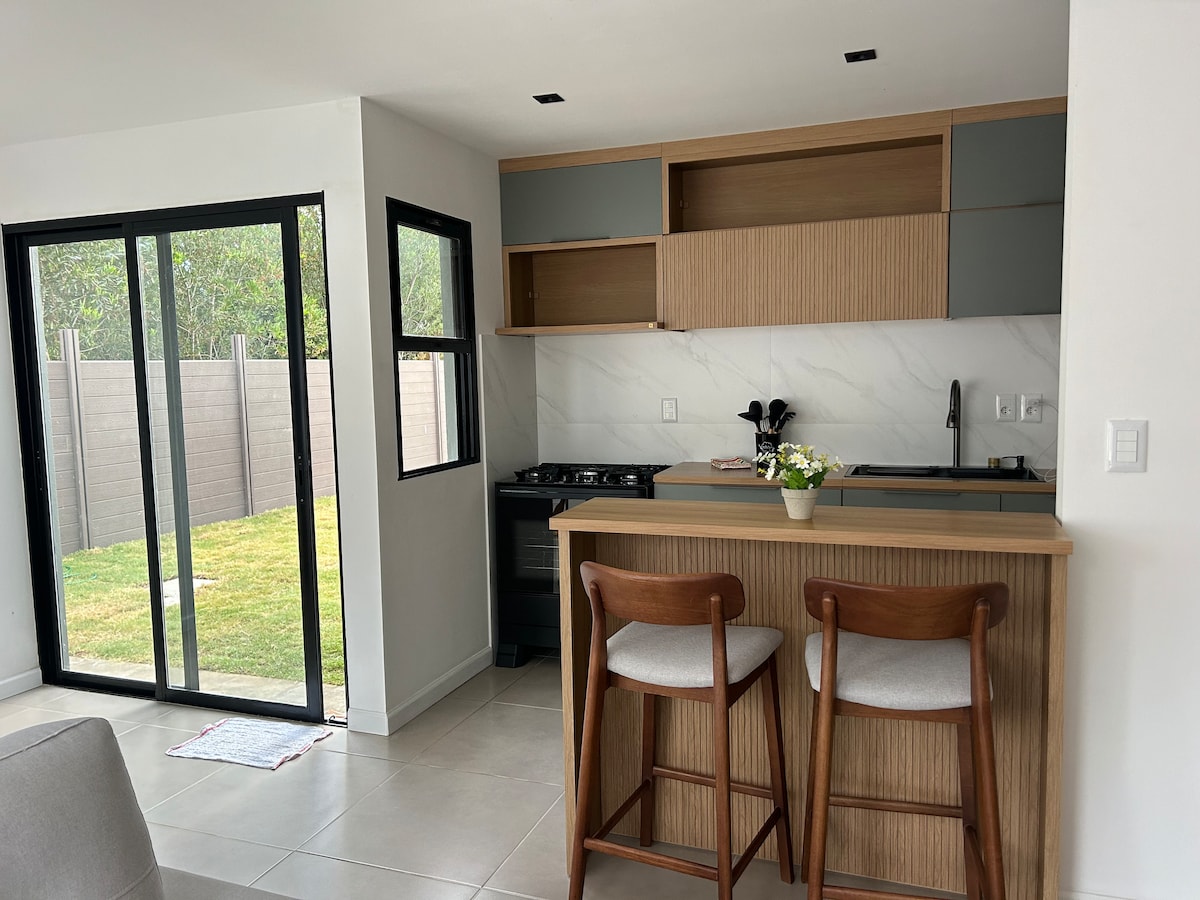 Casa moderna y recién construida, ideal para 6 personas. Cuenta con tres dormitorios, dos baños, living comedor y cocina integrados, con mobiliario nuevo. El exterior es perfecto para disfrutar: piscina climatizada con reposeras, patio con pérgola y juego de jardín. También cuenta con una barbacoa con parrilla y mesa rústica para 6 personas incluye tercer baño completo. Incluye además lavarropas. Espacios cómodos y bien equipados para una estadía relajante. ¡Muy recomendable!