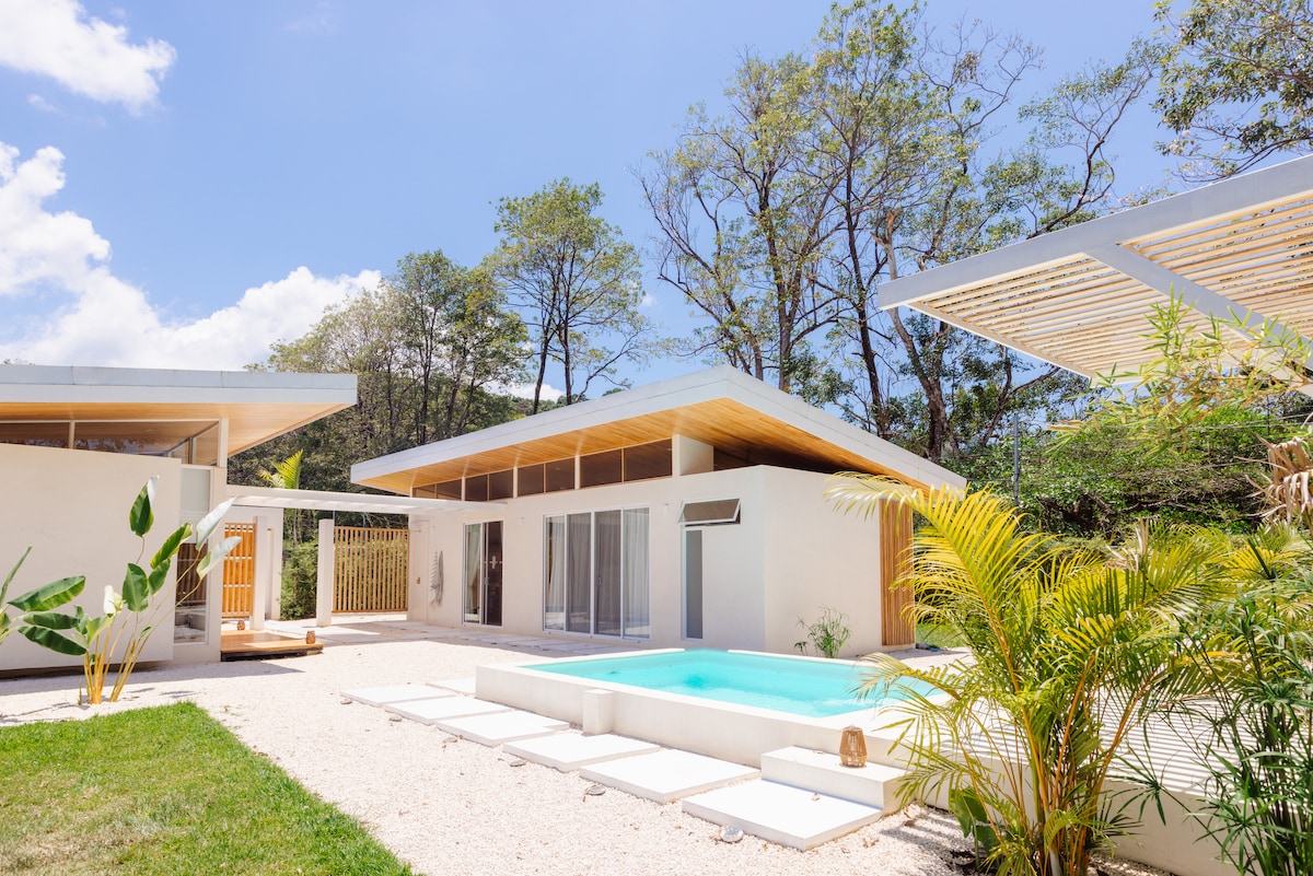 -DALAWANG minutong lakad papunta sa beach - Apat na kaakit - akit na bungalow na nakasentro sa nakakaengganyong pool - Tahimik na lokasyon na malapit sa lahat ng amenidad - 200m mula sa tuktok ng world class point break - 150 metro lang ang layo ng nakakapagpasiglang tubig ng Rio Claro - 5 -10 minutong lakad papunta sa sentro ng bayan na may mga restawran at grocery store - Pool at shower sa labas - Saklaw na kusina sa labas at lugar ng BBQ - Modernong kusina na kumpleto ang kagamitan - Ice cold A/C at wifi na may backup na UPS - Marami ang mga uod at iba pang wildlife