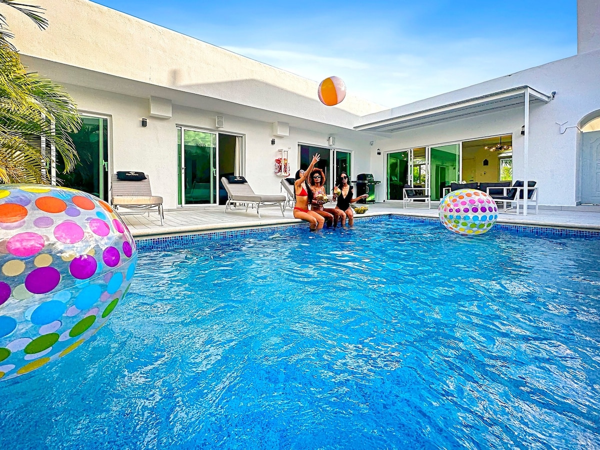 Beach Villa Rubi na may Pool, BBQ & Maid + Libreng Gym