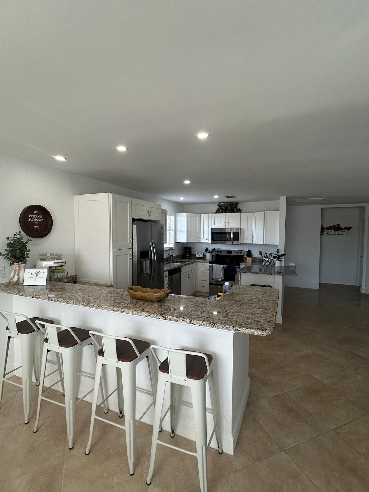 Welcome sa Pelican House, isang maliwanag at maluwang na bakasyunan sa Florida na idinisenyo para sa pampamilyang kasiyahan at ganap na pagpapahinga. Nagtatampok ang magandang tuluyan na ito na may 4 na kuwarto at 2 banyo ng libreng pinainit na pool at maaraw na open layout na perpekto para sa pagtamasa ng tropikal na pamumuhay sa Cape Coral. Puwede kang lumabas sa pool area—kung saan puwede kang lumangoy, magpasikat, o kumain sa labas—sa pamamagitan ng malalaking sliding door na mula sa sala, kusina, at master bedroom. Ang screened na lanai at c