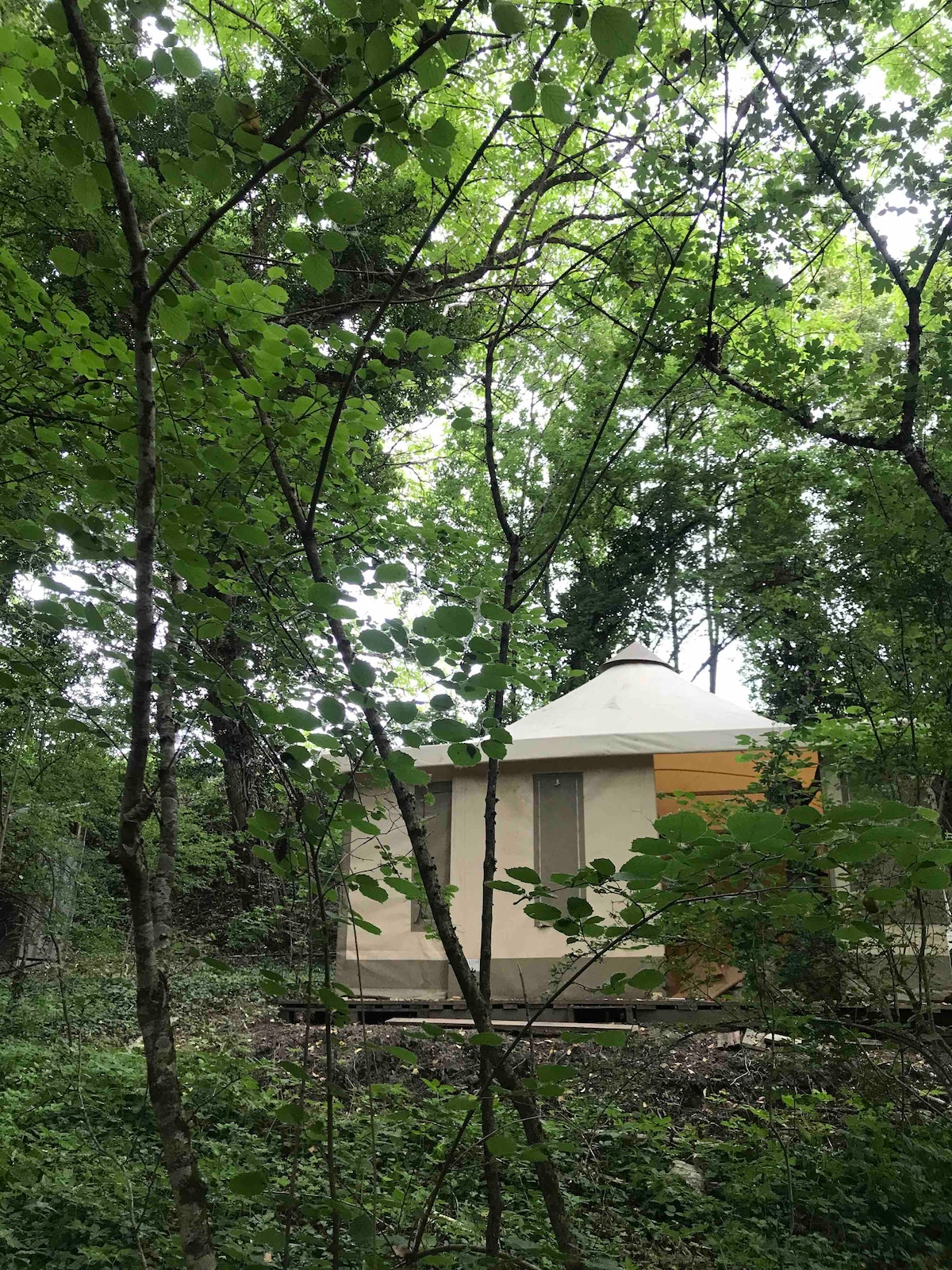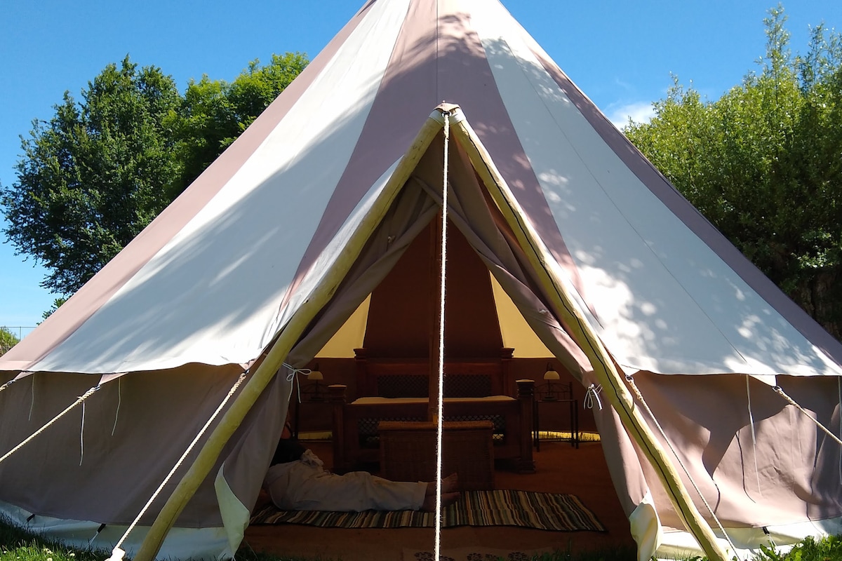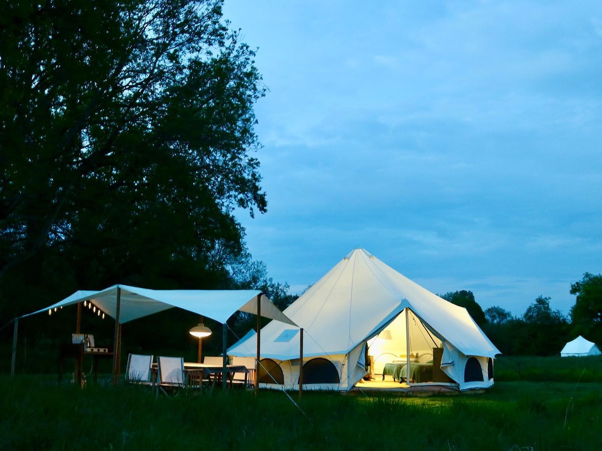 Matatagpuan ang marangyang tent na ito sa mini campsite na ito na para lang sa mga may sapat na gulang, kung saan masisiyahan ka sa mga nakamamanghang paglubog ng araw tuwing gabi. May Jeu de Boule court, splash pool, shower sa labas, duyan, at zen space sa ilalim ng 400 taong gulang na oak, isa itong hiyas sa Creuse. Puwede ka ring magpa‑masahe para makapagrelaks. Ang panimulang punto para sa mga hiker at siklista. Mainam para sa aso pero dapat nakakadena sa lugar.