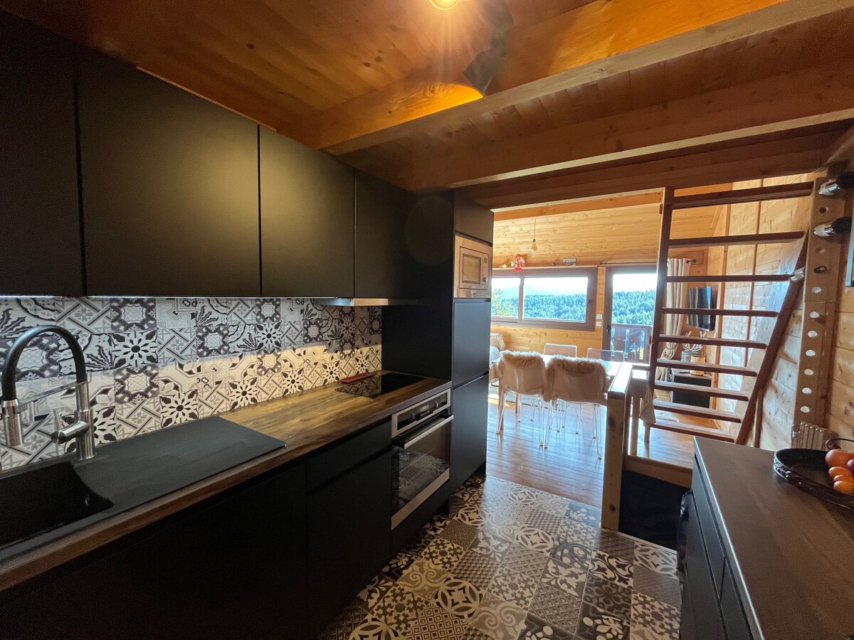 Mainit na chalet 6 -8 pax, 1700 m araw at mga tanawin!
