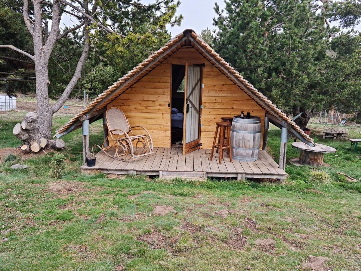 Ang tuluyan na may mga tanawin, ay may dalawang silid - tulugan na may maliit na kusina at seating area. Nasa tabi ng Lodge ang mga shared sanitary facility. Matatagpuan ang tuluyan sa tahimik na campsite ng pamilya. Sa burol sa lilim ng mga halaman, ito ay isang perpektong lugar para i - recharge ang iyong mga baterya. May iba 't ibang serbisyo ang campsite: restawran, swimming pool, mini farmhouse ... May perpektong lokasyon na 45 minuto mula sa dagat at malapit sa mga kastilyo ng Cathar Country. Maraming aktibidad sa isports at kultura sa paligid ng campsite
