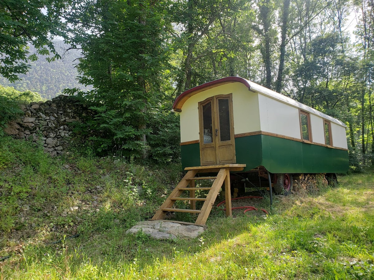 Isang caravan mula sa 1930s, na pagkatapos ng mahabang paglalakbay ay natagpuan ang lugar nito sa isang napaka - walang dungis na lambak ng Pyrenean. Isang hindi pangkaraniwang tirahan, na puno ng kagandahan at mga kuwento sa paglalakbay, kung saan masisiyahan ka sa kalmado at lokasyon sa lilim ng mga puno ng kastanyas.