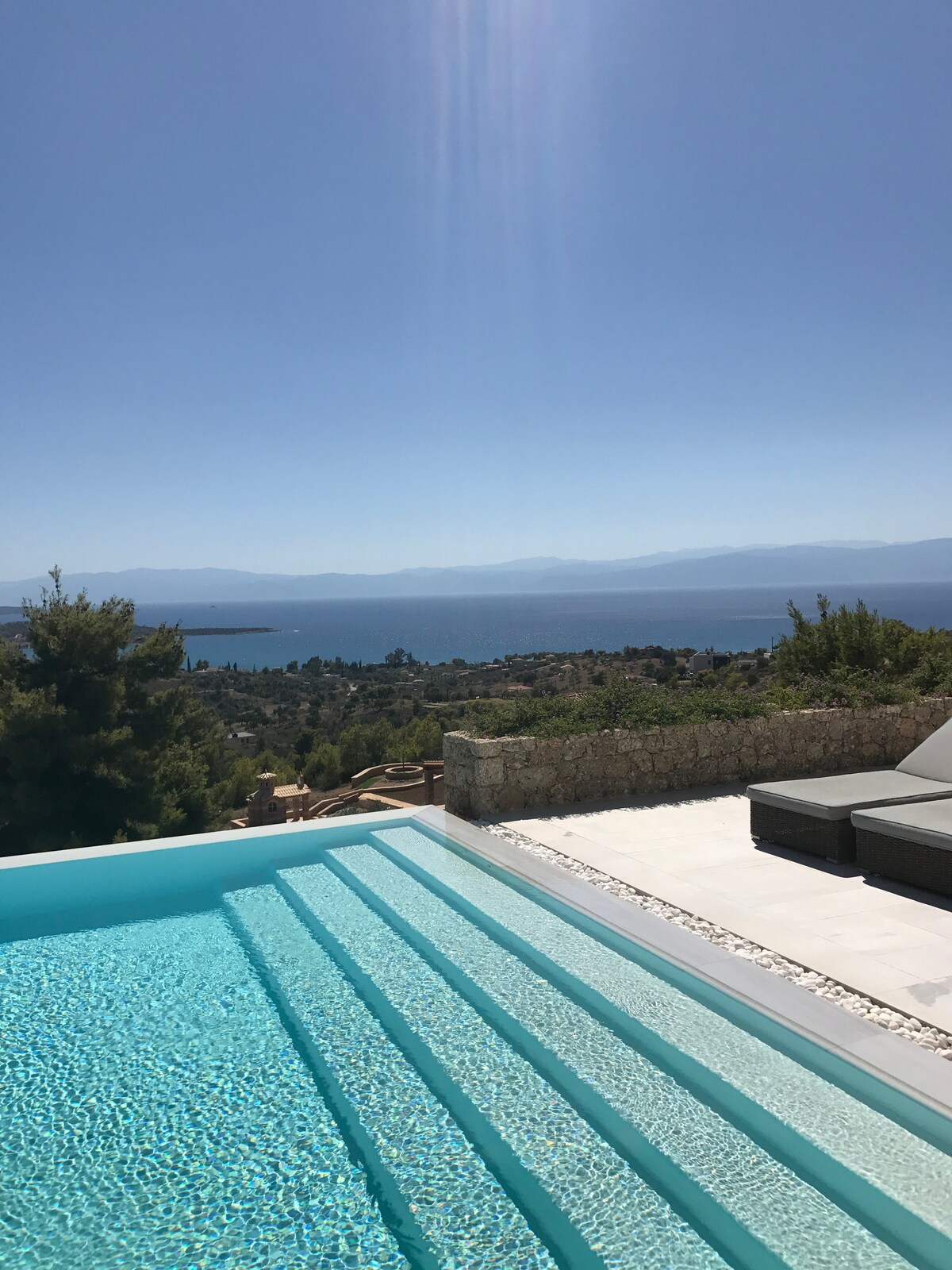 Ang Cliff Retreat - Pribadong Beach - Nakamamanghang Tanawin Nag - aalok sa iyo ang Cliff Retreat ng ultimate get - away at nakakarelaks na kapaligiran na may kahanga - hangang 180 - degree na tanawin ng Argolic Gulf. Isang ganap na natatanging karanasan, maglakad pababa sa mga baitang na may bato sa pamamagitan ng pribadong pasukan sa isang malinaw na asul na water pebble beach. Idinisenyo ang bawat kuwarto para mapakinabangan ang tanawin ng karagatan at makapagpahinga gamit ang mga maindayog na tunog ng mga alon na ilang metro lang ang layo sa ibaba. Mainam na lugar para sa mga pamilyang may mga anak o romantikong katapusan ng linggo.