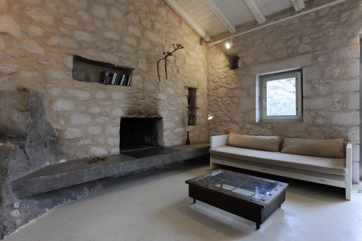 Matatagpuan ang apartment sa una at ikalawang palapag ng nakalistang bahay na Venetian mula sa ika-15 siglo na may tradisyonal na pagkakaayos. Isa ito sa ilang gusali mula sa panahong ito na nakaligtas sa nakakasirang lindol noong 1956. Nasa loob ng pader ng lungsod ang bahay na nagpoprotekta sa pinakamahusay na napanatiling bayan ng isla. Napakatahimik ng lokasyon na nasa gitna ng mga makitid na kalye ng nayon. Nakakamanghang tanawin ng dagat at 10 minuto lang ang layo ng beach. 1 -3 tao