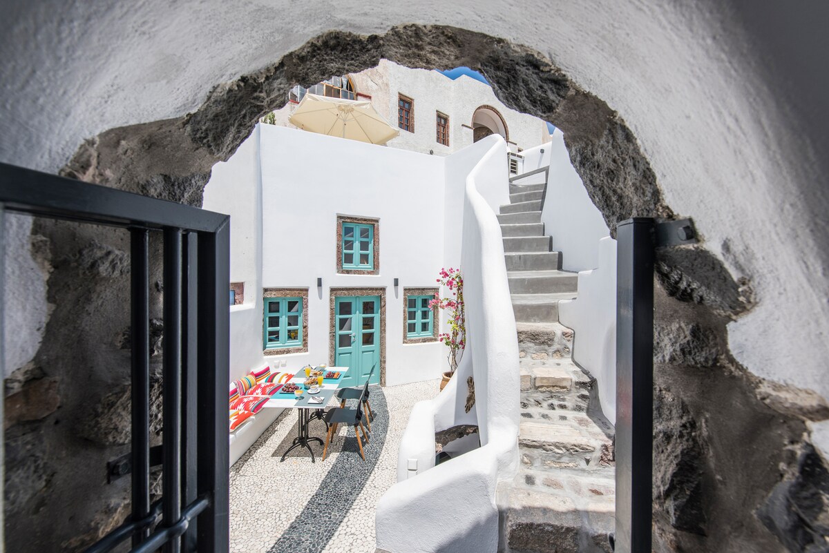 Maligayang pagdating sa aming kaakit - akit na santuwaryo! Magpakasawa sa kasaysayan ng Santorini sa aming payapang Pyrgos hideaway, na matatagpuan sa tabi ng makasaysayang simbahan ng Saint Dimitrios at ng iconic na simboryo nito! Yakapin ang mabagal na pamumuhay sa isang awtentikong kanlungan, kung saan naghihintay ang perpektong timpla ng makasaysayang kagandahan at modernong kaginhawaan.