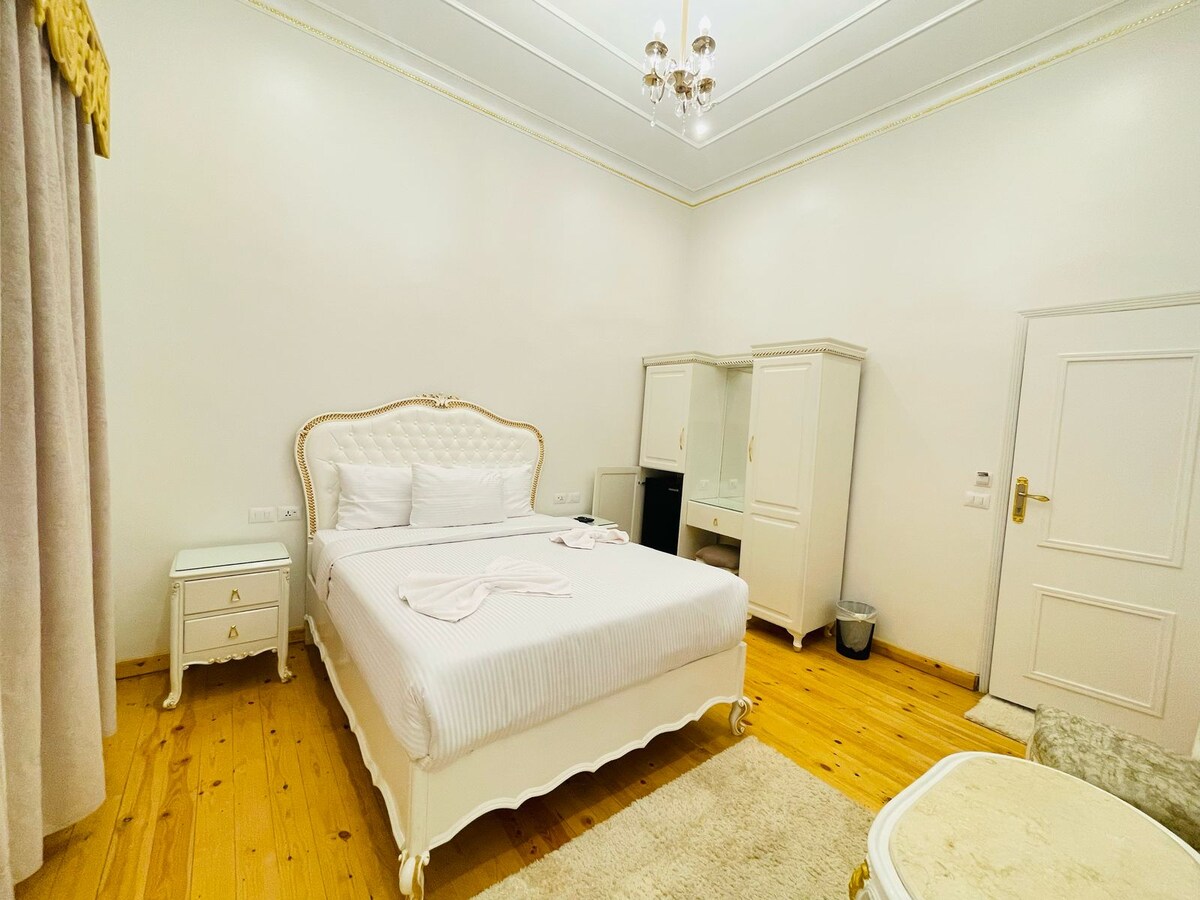 this stylish room is located at the heart of Downtown Cairo, 500 meter away from the iconic Tahrir square . the room is an 3 min walk from the Egyptian Museum and is surrounded with all kinds of restaurants and cafes. the room features as a comfortable queen size bed , smart TV, AC, Wi-Fi, Mini bar , private cozy bathroom, and shared loaded kitchen. also we provide free breakfast .