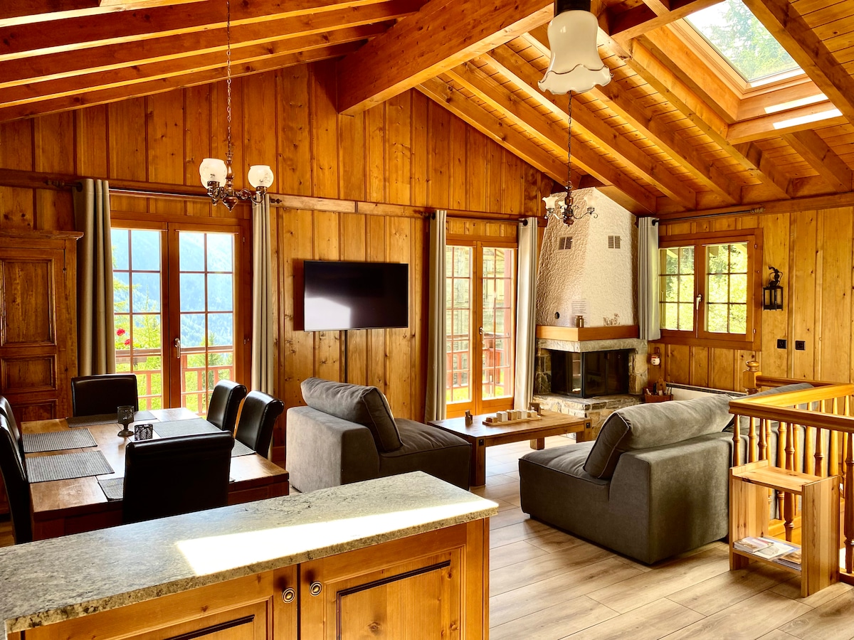 Ang chalet na ito ay isa sa mga pambihirang hiyas ng lambak. May perpektong kinalalagyan sa tahimik na distrito ng Pélerins, masisiyahan ka sa nakamamanghang tanawin mula sa iyong terrace. Ginagarantiyahan ng kaginhawaan ng loob na kumpleto sa kagamitan nito ang maraming souvenir kasama ang iyong mga mahal sa buhay. Isinagawa ang partikular na pangangalaga para palamutihan ang kamakailang property na ito. Ilang minuto lang ang layo ng mga tindahan, aktibidad, transportasyon, at sentro ng bayan ng Chamonix. Kasama ang paradahan ng kotse. Maligayang pagdating!
