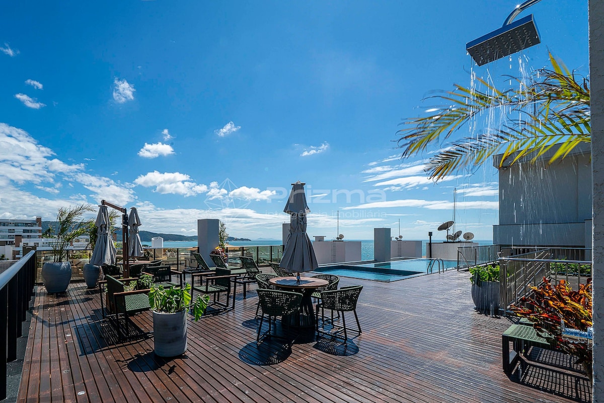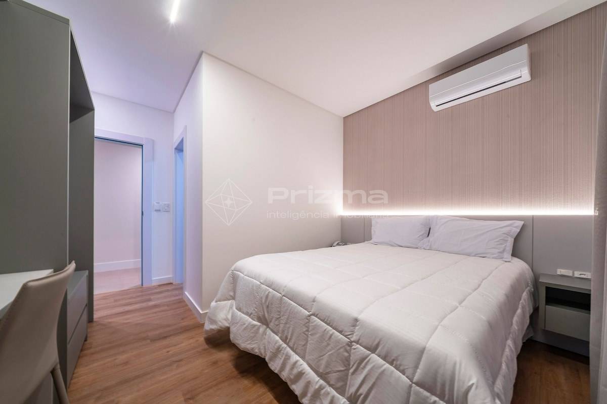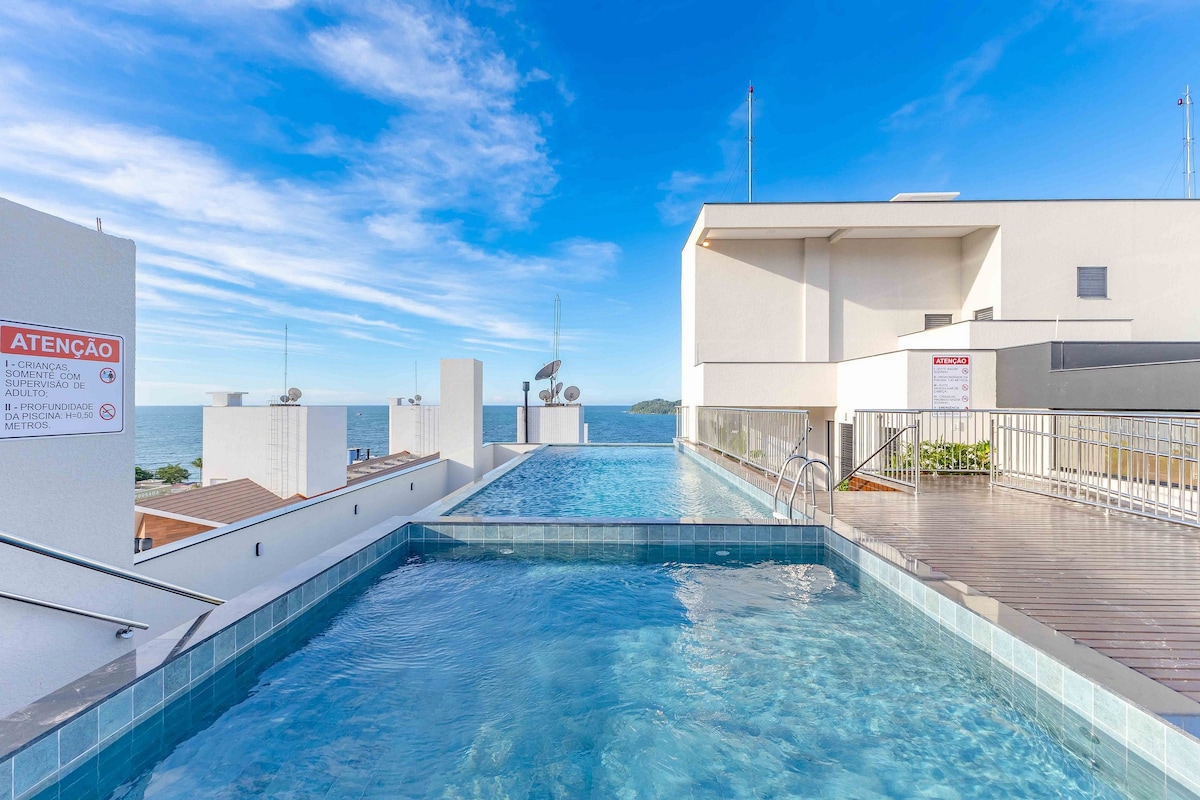 Nag - aalok kami ng en - suite na kuwarto sa Four Seasons Residence, isang naka - istilong lugar na malapit sa lahat ng kailangan mo. May karapatan ang suite na gamitin ang mga terrace pool na may mahusay na tanawin ng dagat ng Bombinhas, na may mga gilid na walang hanggan. Sa lugar ng paglilibang, may pinainit na pool na may built - in na jacuzzi. Bukod pa rito, mayroon itong bayad na OMO community laundry, libreng umiikot na paradahan. Magandang lugar para sa bakasyon ng mag - asawa.
