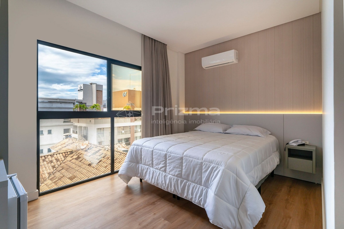 Kumpletong 50m² na apartment na may sala at kuwarto, balkonaheng may whirlpool, nakaharap sa dagat at nasa gilid ng kabundukan. Nasa Blue Sea Hotel ang apartment, ang pinakabagong development sa tabing-dagat sa Ilhota beach, Itapema/SC—isang moderno at marangyang estruktura. May infinity pool, children's pool, sauna, gym, game room, haute cuisine restaurant, at SPA ang hotel. Direktang makakapunta ka sa beach, may paradahan (may bayad), at may wifi.