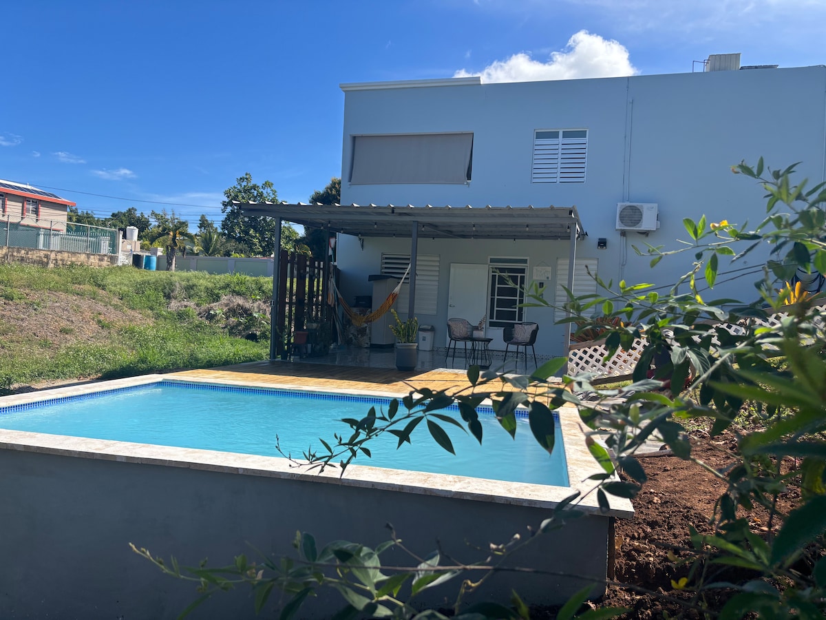 Inaanyayahan ka naming magpahinga sa komportableng tuluyan na ginawa ko kasama ng komportableng tuluyan ng aking mga magulang. Ito ay isang pribadong lugar na puno ng katahimikan at kapayapaan, magiging komportable ka sa nayon ng Quebradillas! Isa itong komportable at maluwang na kariton na may TV, air conditioning sa kuwarto at workspace, yoga/exercise area + jacuzzi. *Magtanong tungkol sa aming mga alok sa dekorasyon para maisama ang mga ito nang may karagdagang presyo *