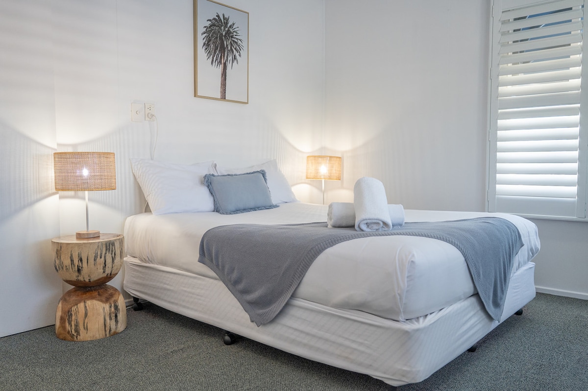 Ang aming mga komportableng kuwarto ay sulit para sa pera at higit sa lahat, komportable at naka - istilong. Matatagpuan sa maigsing lakad lang papunta sa lahat ng inaalok ng Brunswick Heads, pero tinatangkilik nito ang nakakarelaks na tropikal na vibe. Kasama sa mga amenidad ang saltwater pool na may mga sun lounger, BBQ cabana, Hydration Station, at libreng bisikleta. Mga Komportableng Tampok ng Kuwarto: - Dobleng Higaan - Air - conditioning - 50 pulgadang TV - Mga pasilidad para sa paggawa ng tsaa at kape - Luxury GROWN ALCHEMIST TOILETRIES - WiFi - Microwave (kapag hiniling), toaster, at kettle - Hairdryer