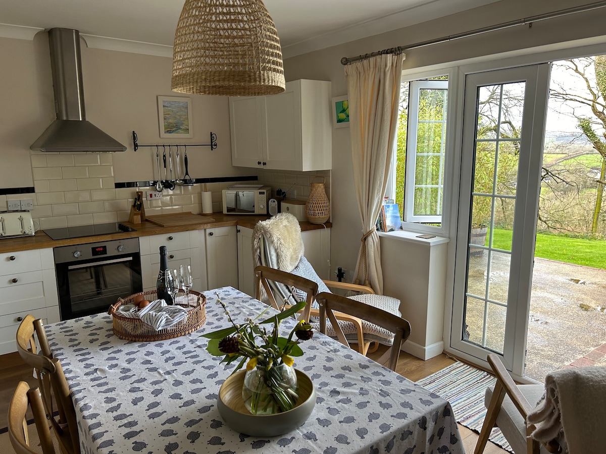 Matatagpuan nang malayuan, 2 palapag, self - contained na cottage na may malaki at bukas na planong triple aspect na silid - tulugan sa ika -1 palapag na nag - aalok ng mga kamangha - manghang tanawin. Nag - aalok ang ibaba ng silid - tulugan na may king size na higaan, shower room at kusina/kainan na nagtatampok ng woodburner, dining table at dalawang komportableng upuan na nakatanaw sa malawak na tanawin sa kanayunan. Nagbubukas ang mga French door sa terrace na may mga muwebles sa hardin at chimenea at pribadong hardin na may BBQ. Napakahusay na signal ng Wi - Fi sa buong lugar. Malugod na tinatanggap ang mga aso - max 2