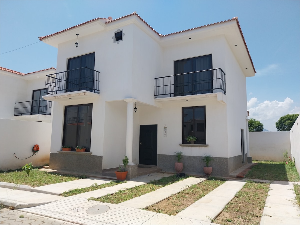 Kumpletuhin ang bahay na may mga bagong pasilidad, sa isang ligtas na lugar ng tirahan, sa harap ng Pradera Chiquimula shopping center: lugar ng mga restawran, sinehan, tindahan, atbp. Ang bahay ay may 2 silid, isa na may king bed at ang isa na may queen bed. Mayroon na ngayong aircon sa parehong kuwarto.