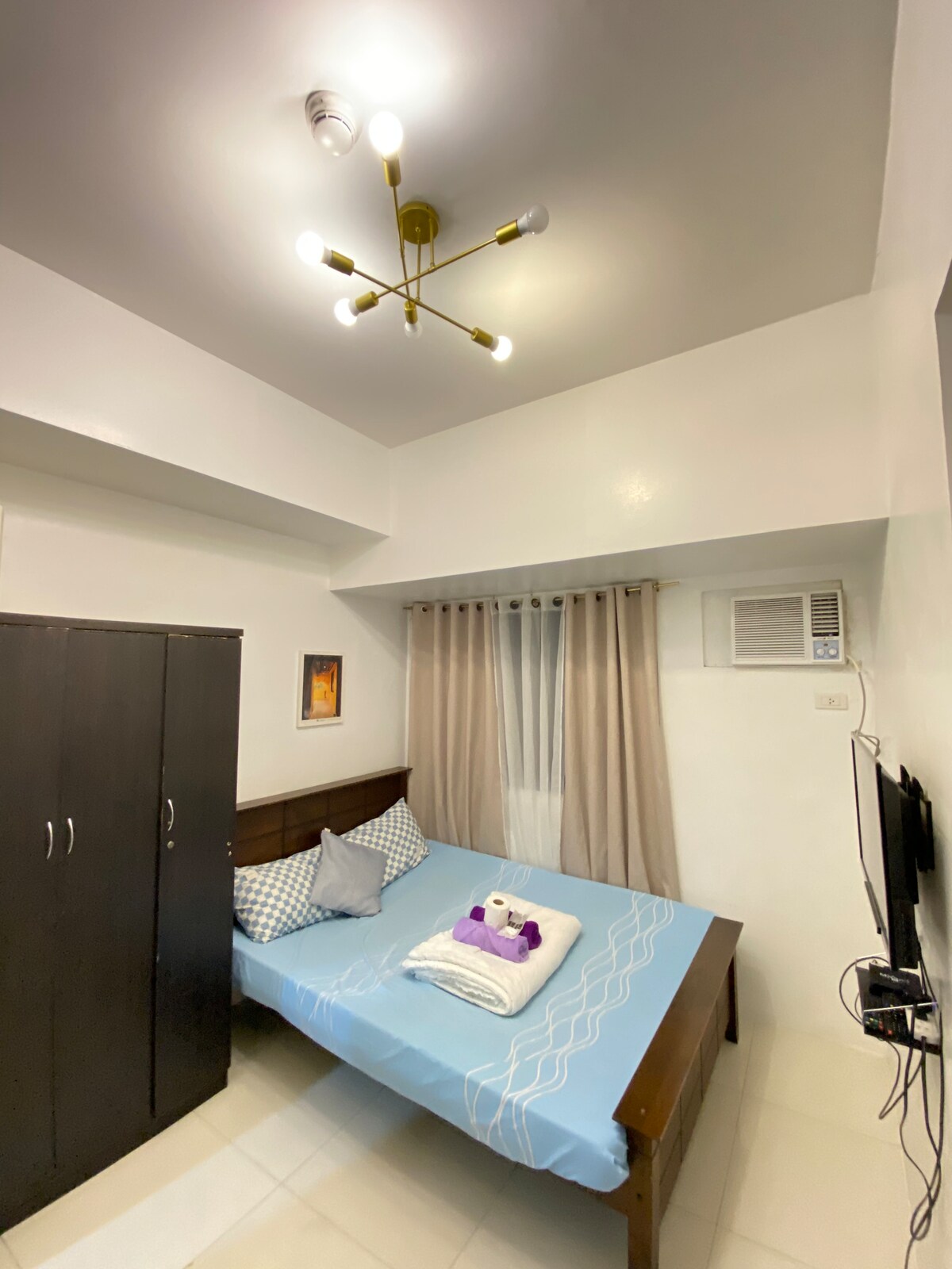 Maingat na idinisenyo na may modernong ugnayan, ang komportableng 43rd - floor studio na ito ay nag - aalok ng kaginhawaan at kaginhawaan para sa mga biyahero, mag - asawa, o malayuang manggagawa. Masiyahan sa mapayapang umaga at maginhawang gabi sa itaas ng skyline ng lungsod. • Komportableng queen bed na may mga sariwang linen • May plantsa at hair dryer para sa kaginhawaan mo • Malinis at komportableng tuluyan para sa nakakarelaks na pamamalagi • Malapit sa Robinsons Place, Intramuros, at Luneta Park • Matatagpuan sa tapat mismo ng US Embassy Manila
