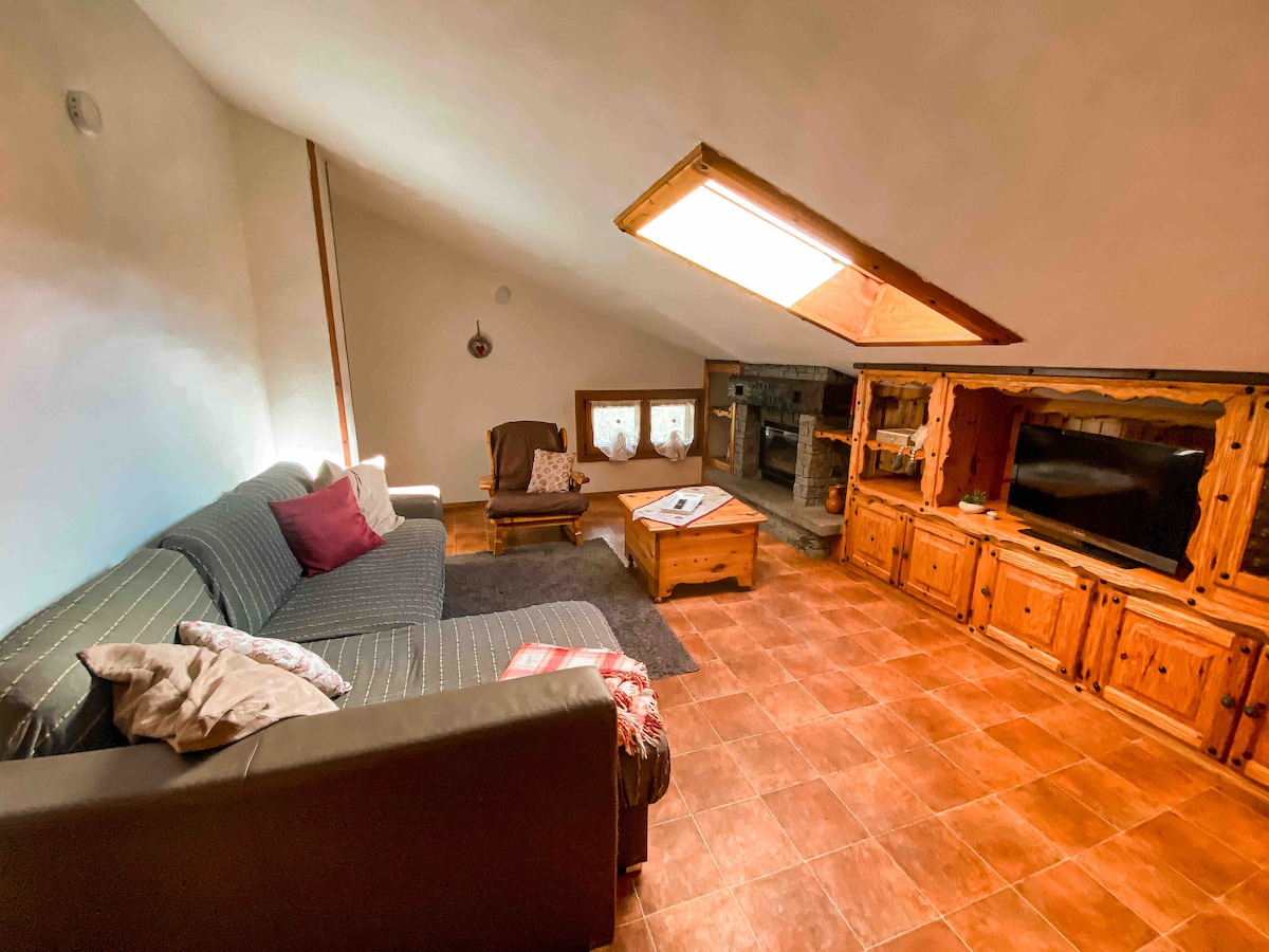 Attic apartment na matatagpuan sa isang tahimik na lugar sa gitna ng lambak, na perpekto para sa mga gustong gumugol ng nakakarelaks na bakasyon sa kalikasan, sa tanawin ng bundok, naglalakad at bumibisita sa mga nakamamanghang lugar. Inirerekomenda rin ito para sa mga gustong bumisita sa Valle d 'Aosta o madalas sa iba' t ibang ski area. Puwedeng tumanggap ang property ng 6/7 tao, pero sa pagdaragdag ng katabing studio, puwede kang tumanggap ng hanggang 8 -9 na bisita. Kada tao kada gabi ang presyo. CIR 0046