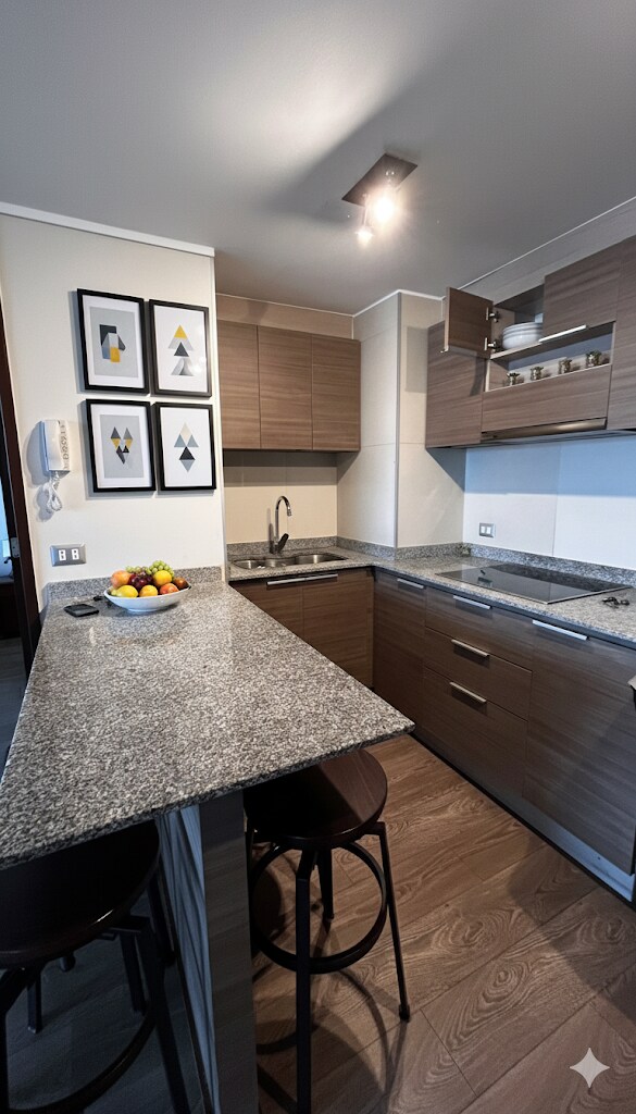 Un pequeño loft en un edificio moderno ...muy completo ,para una estadía agradable con todo lo necesario para sentirte muy cómodo , cerca del terminal de buses , a 2 cuadras de la estación del metro , acceso a locomoción en la esquina,muy cerca de supermecado y Mall Viña Centro , a 7 minutos caminando llegarás a la quinta Vergara . No hay estacionamiento disponible dentro del edificio ,solo fuera del edificio(podría conseguirte un estacionamiento con costo extra dentro del edificio)