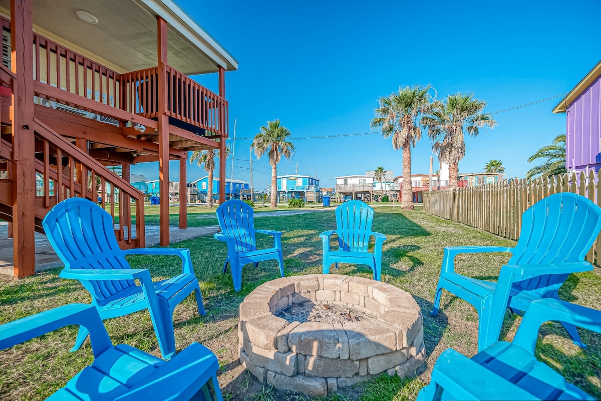 Maligayang pagdating sa Surfsonian, ilang hakbang ang layo ng aming magandang beach house mula sa tubig. Nag - aalok ang mapayapa at nakakarelaks na setting ng mga tanawin at tunog ng karagatan sa ikalawang hilera. Bagong update na may maraming karakter. Handa na ang deck para maupo ka at panoorin ang mga alon o maglakad nang 30 segundo para marating ang tubig. Magugustuhan mo ang tuluyan sa loob at labas. Ang super chill Village ng Surfside ay maginhawang matatagpuan 1 oras mula sa downtown Houston at 15 minuto mula sa Lake Jackson.
