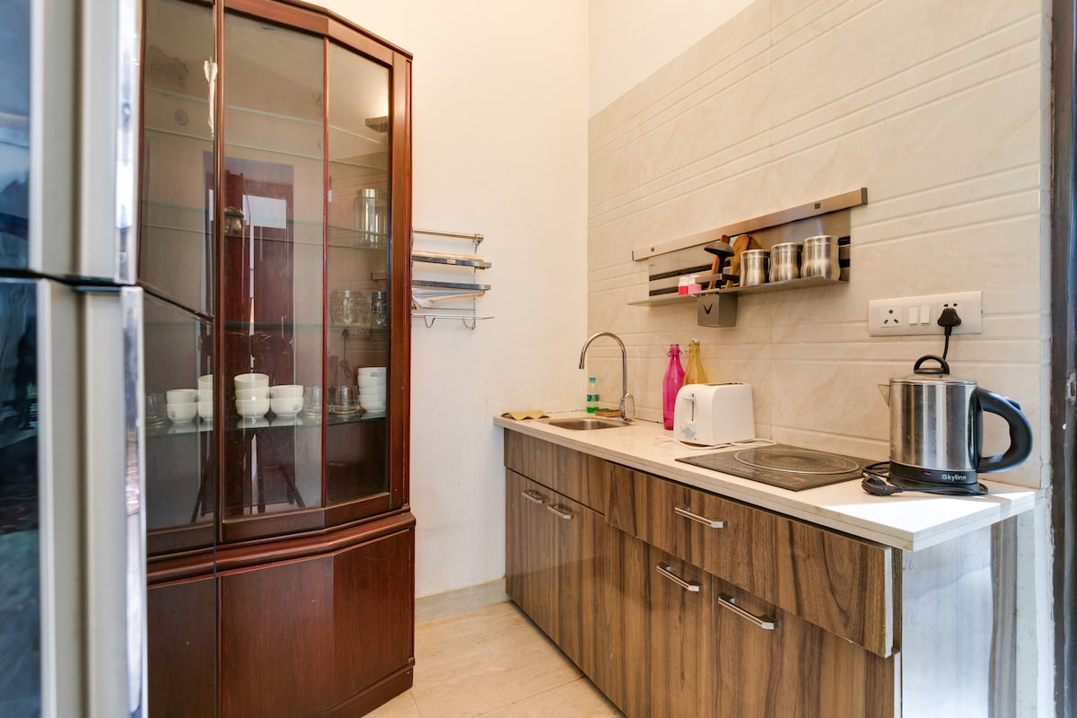 Ang aming dalawang silid - tulugan na apartment ay may tunay na pakiramdam sa lungsod. Komportable itong kasya sa apat. Ikaw mismo ang magkakaroon ng buong apartment — magandang hardin, kusinang may kumpletong kagamitan, at komportableng pag - aaral. Nagbibigay ang apartment ng madaling access sa makasaysayang Qutab Minar complex, iba 't ibang parke, at shopping mall na may mga restawran at sinehan. Maigsing distansya rin ito mula sa Max at Max Smart Super Speciality Hospitals. Maginhawa ang paglilibot gamit ang Metro (dilaw na linya) na dalawang minutong lakad lang ang layo.