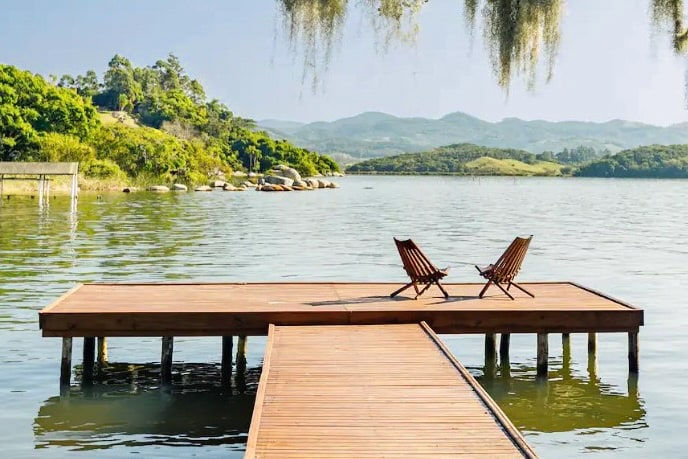 Maghanda para sa isang nakakamanghang karanasan ✨ Romantikong chalet sa laguna na may magagandang tanawin, hot tub, pool, at heater. Pinagsasama‑sama nito ang estilo, pagiging sopistikado, at kaginhawa, kaya perpekto ito para sa mga mag‑syota na magsaya ❤️ Pribilehiyong lokasyon, may access sa 100% asphalted/footwear, paa sa laguna, 30 minuto lamang mula sa mga beach ng Imbituba, ilang metro mula sa sentro at sa tabi ng pinakamahusay na mga restawran sa rehiyon.