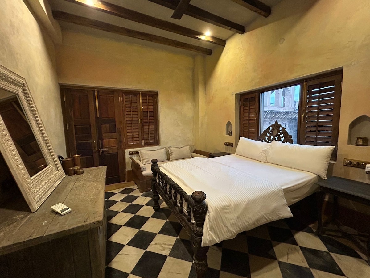 Welcome sa Ananda Tattva by Srijan Stays—isang tahimik na homestay na may magandang disenyo sa gitna ng Vrindavan. Ilang minuto lang ang layo ng aming tahanan sa iconic na templo ng ISKCON at Prem Mandir. Isang bakasyunan ito para sa mga taong naghahanap ng espirituwal na kapayapaan, mga pamilya, at mga biyaherong gustong muling makipag‑ugnayan sa sarili at sa banal na enerhiya ng Vrindavan. Pinag‑isipang pag‑aayos ng loob, mga kulay na nagpapakalma, at mga modernong kaginhawa ang dahilan kung bakit perpektong tuluyan ito para magpahinga pagkatapos ng isang araw ng mga darshan at pagbisita sa templo.