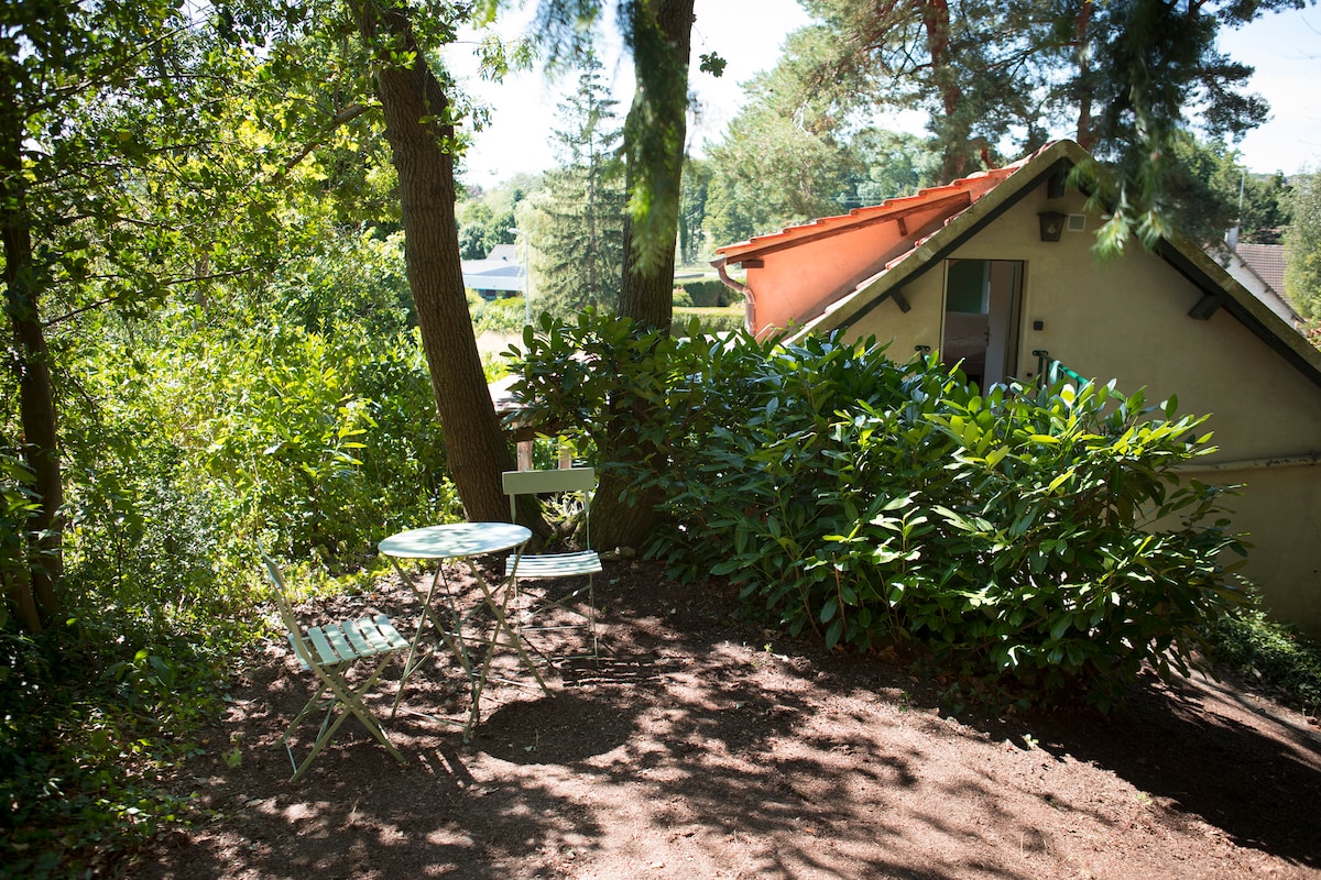 Chez l'habitant mais indépendante, chambre à l'étage d'une petite annexe voisine de notre maison. A 7 mn à pieds de la gare d'Épernon (40 mn de Paris en train) Au calme, en bordure de bois. Joliment décorée, cette charmante chambre mansardée, refaite à neuf, dispose d'une salle de douche avec serviettes de bain. Une machine espresso est également à disposition ainsi qu'une bouilloire et du thé. A l'extérieur, une petite table et 2 chaises pour profiter de votre petit-déjeuner ou vous détendre.