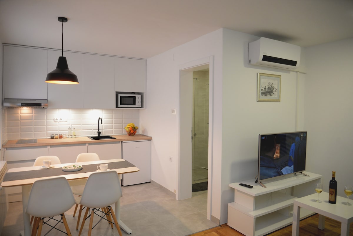 Isang apartment para sa bakasyon at sala, mayroon ito ng lahat ng kailangan mo. Kakapaganda lang ng apartment at bago ang lahat sa loob nito. Magandang lokasyon, malapit sa mga pamilihan, botika, pamilihan, restawran, chevabjinica, panaderya, mga cafe, post office. May dalawang TV, cable TV at NETFLIX Malapit sa mga lawa ng Pannonian, 13 minutong lakad. Malapit sa Gradina Hospital, 2 minutong lakad. Hotel Mellain, Ljeciliste Uni Bristol, fitness club, at mga congress hall ng hotel na 9 na minutong lakad. Talagang komportableng higaan para sa pagtulog Bilis ng internet 50Mbit/s