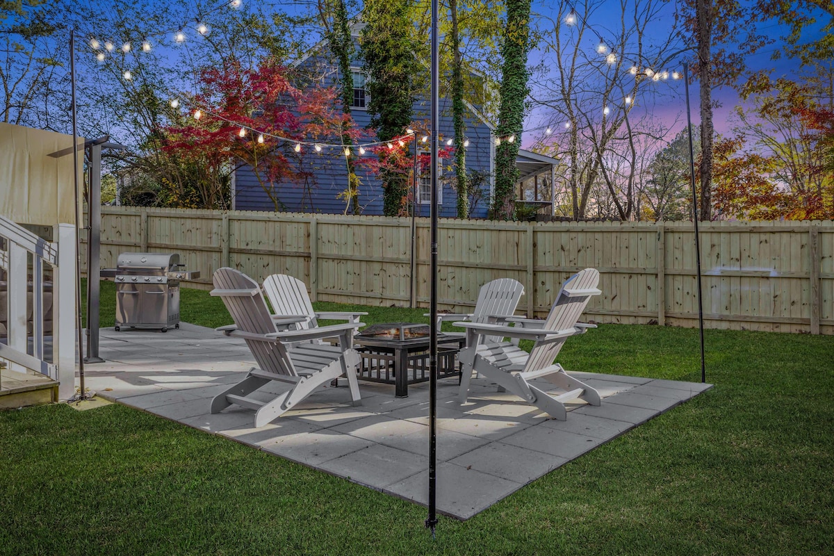 Maligayang Pagdating sa The Raleigh Hideaway! Ang bahay na ito ay ang pangunahing tirahan ng mga may - ari ngunit naglalakbay sila nang malawakan para sa trabaho at nais na mag - alok ng perpektong kinalalagyan at komportableng lugar na ito sa mga bisita ng aming mahusay na lungsod. Ang bahay ay nakaupo sa malaking lote na may sapat na privacy. Magugustuhan ito ng mga mahilig sa mga houseplants at eco - friendly touch dito! Frolic sa malawak na bakod sa bakuran na kumpleto sa fire pit, duyan at swing. Nakakatuwa at kakaiba ang geodesic dome. Pet friendly na kumpleto w malaking dog crate sa sunroom.