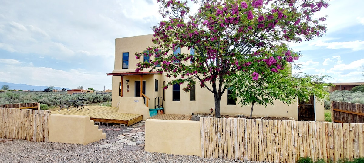 Our modern earth home is a cozy, craftsman-built nest that treats its visitors to light, open space & color. It has a quiet, private setting with everything needed to make your stay comfortable &, hopefully, inspired. The outdoors is this home's other half, creating an enveloping amphitheater of gardens, birds, trees & a hammock. Beyond this private nest are 360 degree views of the Sangre de Christo Mountains, the Rio Grande Gorge, spectacular sunset displays & miles of walking & bike trails.