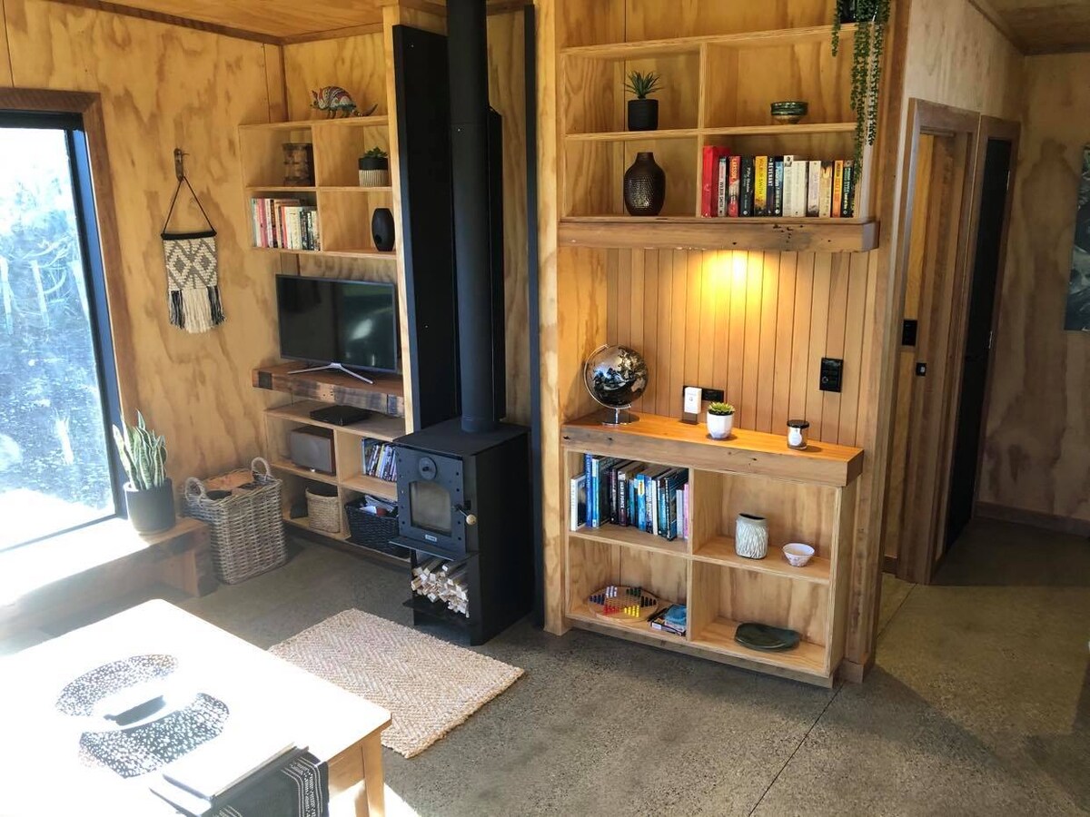 Napakaraming bagay sa buhay ngayon ang agad na nalalaman. Umaasa kami na kapag dumating ka sa Pumice Munting Bahay pagkatapos makita ang mga litrato nito sa paligid nito, na ikaw ay pumasok at tuklasin ang loob at mga nakatagong detalye na may intriga, sorpresa at kasiyahan. Makakaranas ka ng hand - crafted na tuluyan na talagang natatanging lugar na matutuluyan ... kasama ang: cocooning comfort ng straw bale, mga feature ng sunog at tubig sa labas at mga pasadyang muwebles at kagamitan. Nasasabik kaming makasama ka rito.