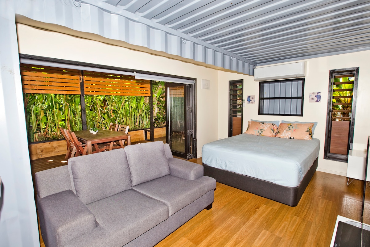 Soak in the warmth of this modern studio unit, beautiful cosy interior with full kitchen. This property has large private covered decks. Very quite cul-de-sac residential area which backs on to native tropical forest with lots of native bird life. Wild mango trees run down a small stream on the south side of the property, which you are most welcome to pick and eat when they are in season, we have bananas, lemons, breadfruit, soursop just to name a few on the property which we are happy to share