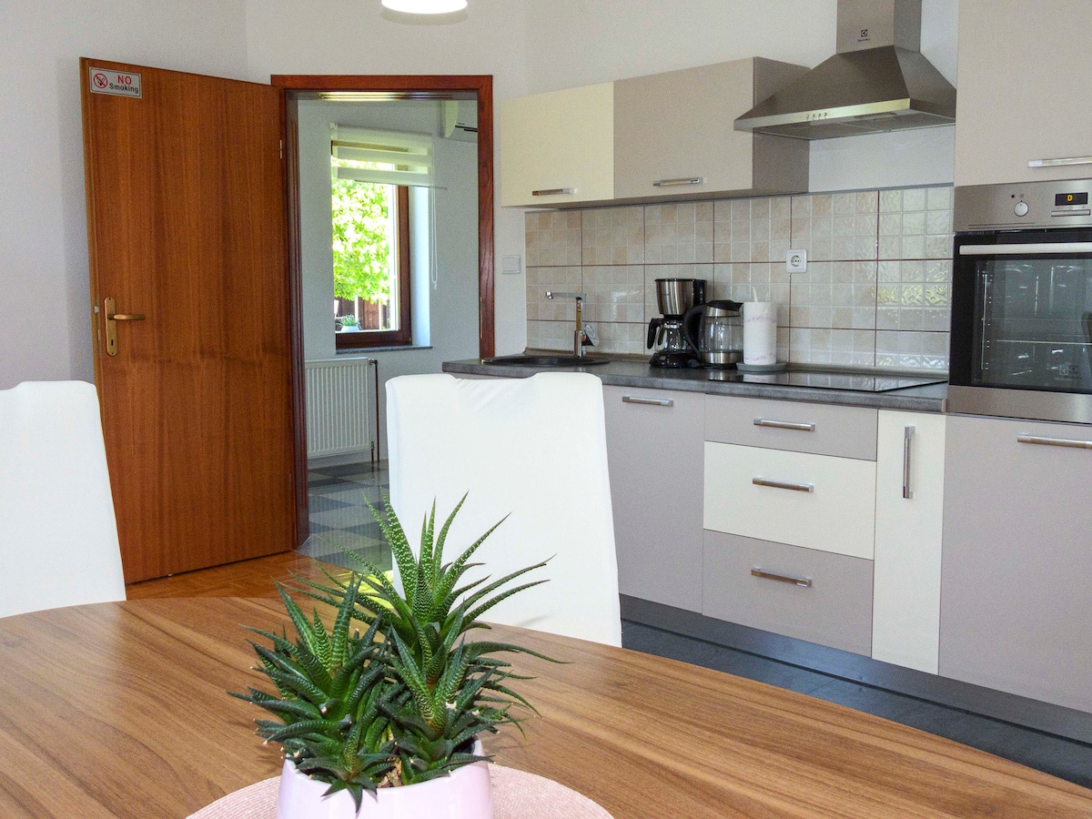 Ang apartment sa unang palapag ay matatagpuan sa isang magandang lugar sa kanayunan na may tanawin ng kagubatan. Ang apartment ay matatagpuan sa maliit na bayan ng Slunj, 10 minuto lamang ng paglalakad sa mga talon, water mills, restaurant, at River Beach sa isang fairy tale village Rastoke. 25 minuto lang ang layo ng Plitvice Lakes. Sa iyong pagdating, bibigyan ka namin ng mga tip at rekomendasyon para sa Plitvice Lakes (mga opsyon sa ruta), Rastoke village, Mga Bar at Restawran, Mga Tindahan, atbp.