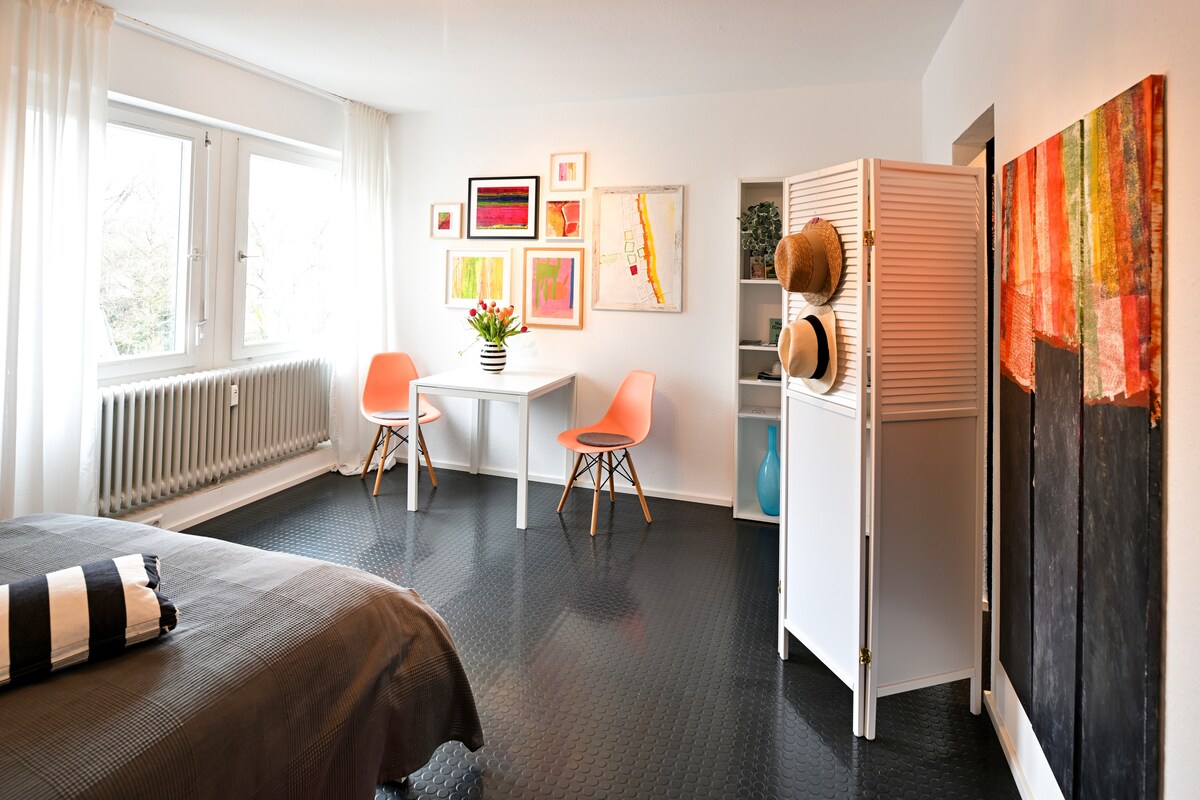 Mamalagi sa StudioM - isang bagong nilikha na lugar na pinagsasama ang estilo, kaginhawaan at lokasyon na malapit sa sentro. Bilang isang solong mag - asawa o maliit na pamilya, nag - aalok ang apartment na ito ng pinakamagagandang kondisyon para sa hindi malilimutang pamamalagi. Ang core renovated apartment sa 2nd floor ng isang multi - party na bahay (na may maluwang na elevator) ay may magandang tanawin sa likod - bahay ng bahay at sa Ravensburg "Green Tower". Wala pang 5 minutong lakad, makakarating ka sa sentro ng lungsod ng Ravensburg.