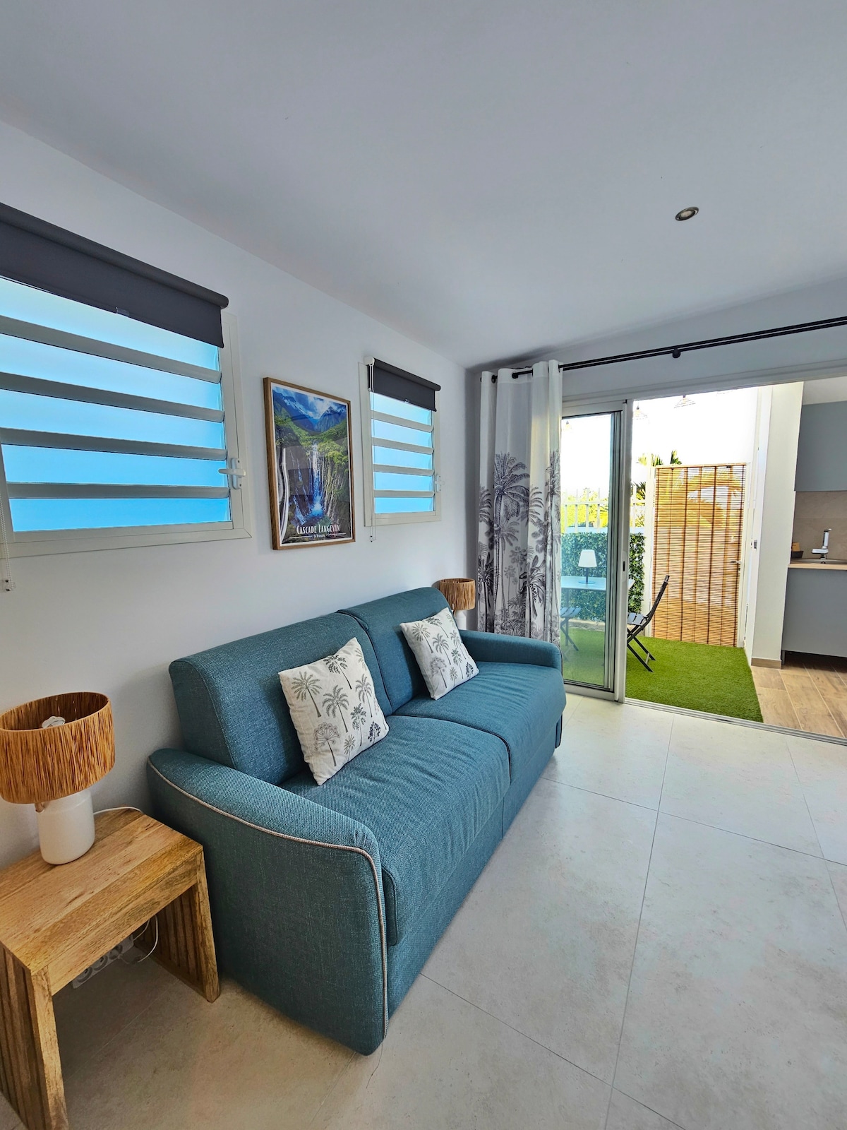 Bienvenue dans notre havre de paix, situé dans un environnement calme et paisible sans vis-à-vis, notre logement vous offrira une parenthèse de bien être🌸 Profitez d'un appartement moderne et cocooning, composé d'une chambre confortable équipée de son lit King size, d'un salon avec canapé lit (1 place) Une magnifique terrasse, sur laquelle est posée un jacuzzi privatif, dans lequel vous pourrez admirer l'océan, idéal pour les couples en quête de romantisme Venez passer un séjour inoubliable