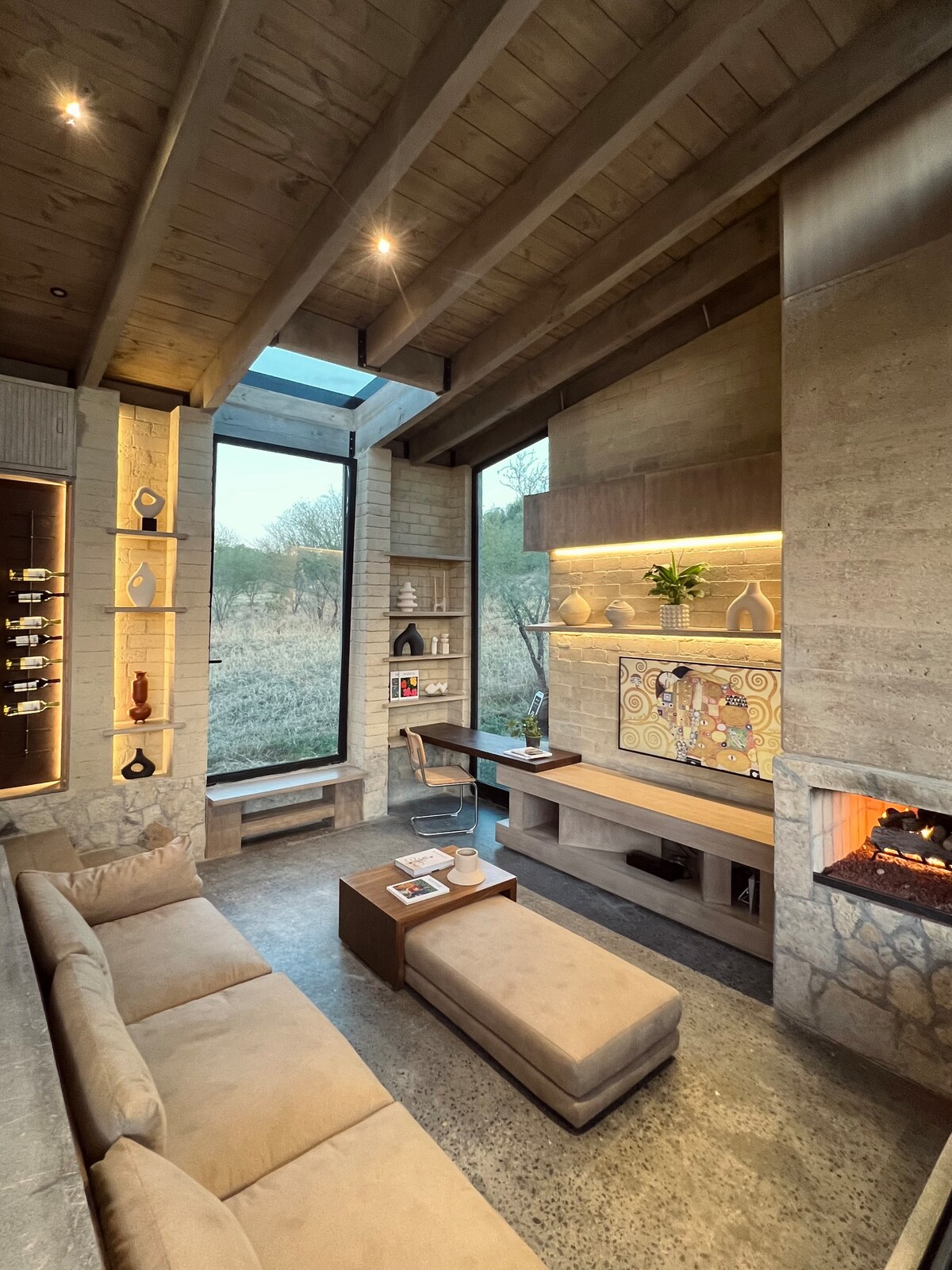 Magandang Designer at Luxury Country House sa Pribadong Fractionation na may Security at Lake Access | Wifi | Garden | BBQ | Terrace | Pool | Outdoor Fireplace | Hammocks | Fireplace | 2 Outdoor Dining Rooms | Kitchen | 1 King Bed | 2 Queen Beds | 2 Full Baths |