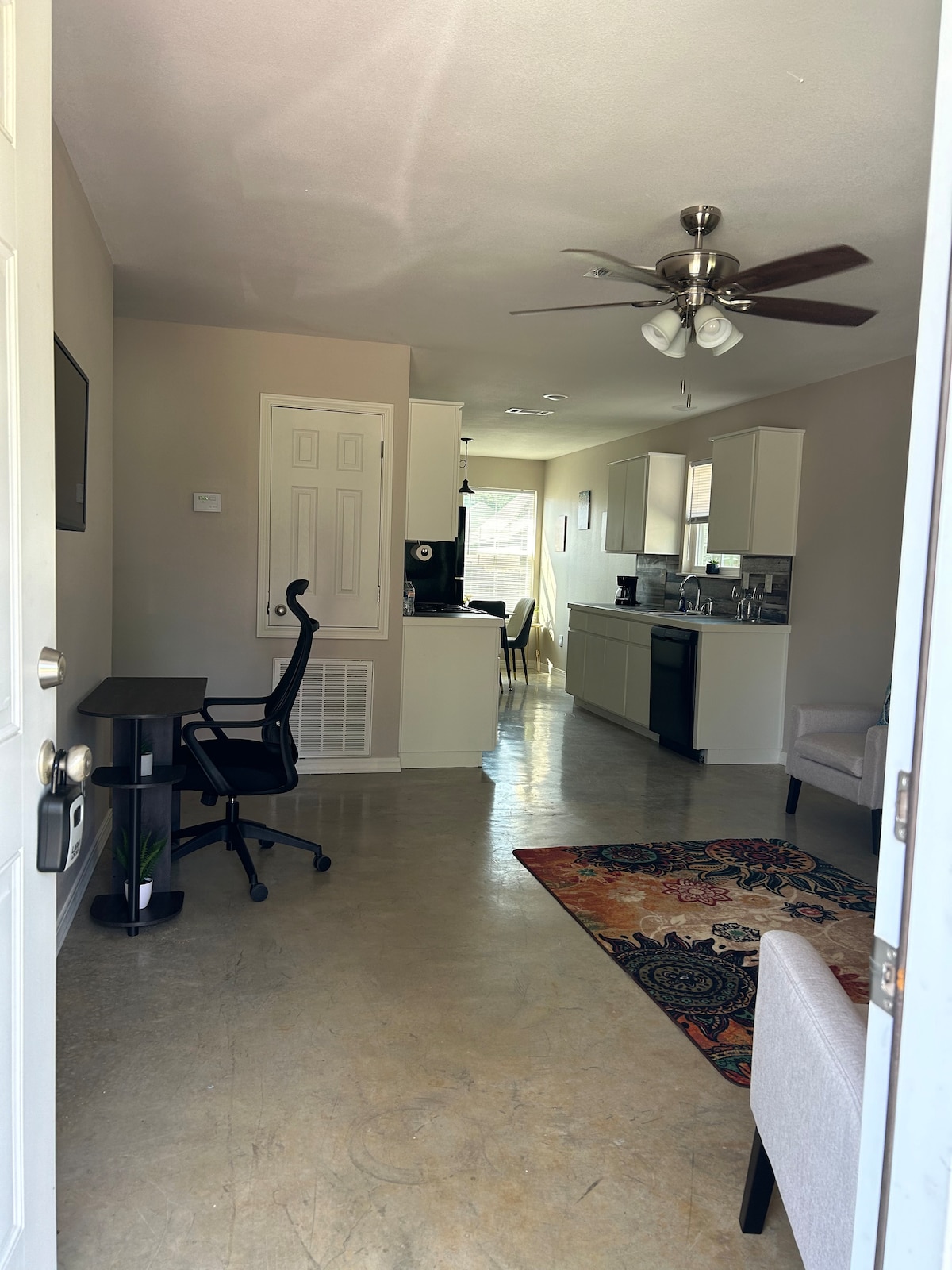 Ang natatanging tuluyan na ito ay nasa maginhawang lokasyon sa tahimik na kapitbahayan na ilang minuto lang ang layo sa mga kainan, pamilihan, ULM, Forsythe Park, at maraming atraksyon. Magiging komportable ka sa 1 kuwarto na may flat screen TV (Netflix, Hulu, Disney + at iba pang streaming service) at mayroon ka ring access sa quarter court indoor basketball court at shared indoor pool na may retractable roof. May mga upuan sa pool area at patyo sa likod at may access sa ihawan at fire pit.