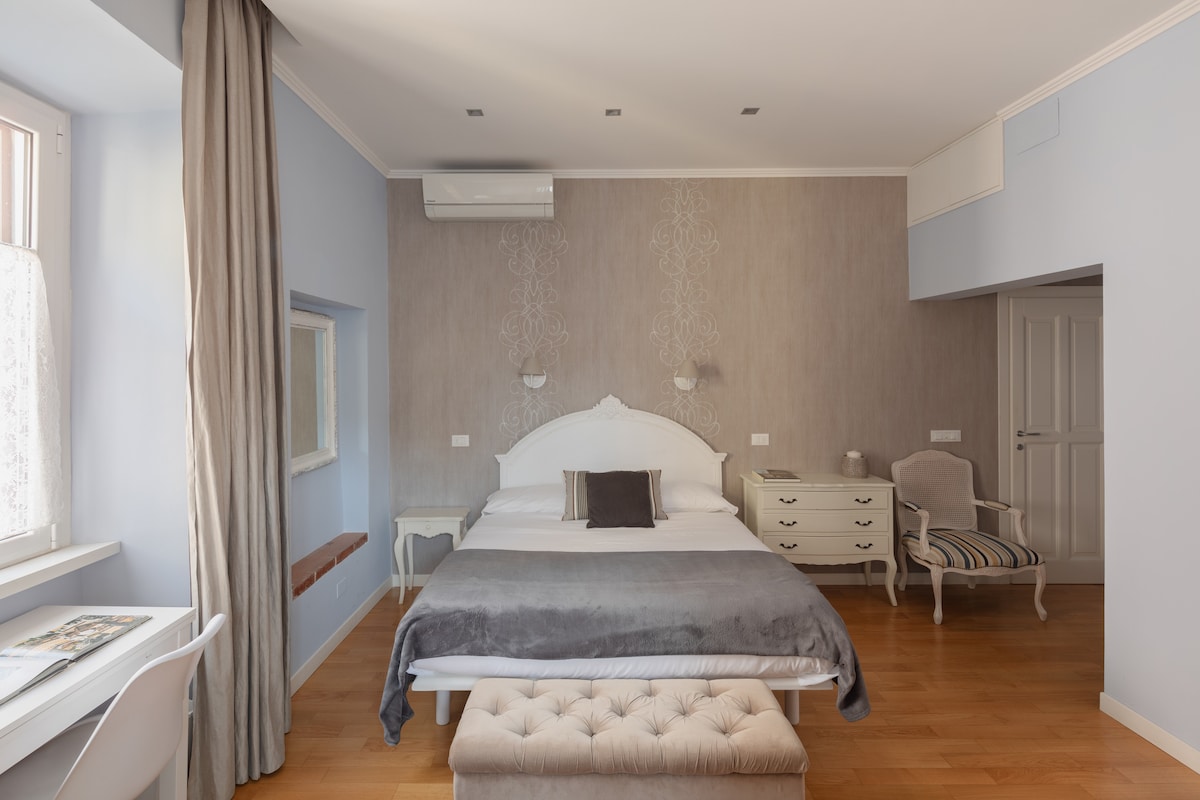 Ang 100 square meter apartment ay may dalawang malalaking silid - tulugan na may mga kisame na gawa sa kahoy, dalawang banyo na may tub at shower, isang malaking sala na may frescoed ceiling. Mainam ito para sa mga ayaw makaligtaan ang anumang bagay. Mayroon ding maliit na kumpletong kagamitan sa kusina ang suite. Bukas ang reception mula Lunes hanggang Linggo mula 8.30 hanggang 20.00. Hindi pinapahintulutan ang pag - check in pagkalipas ng mga oras na ito.