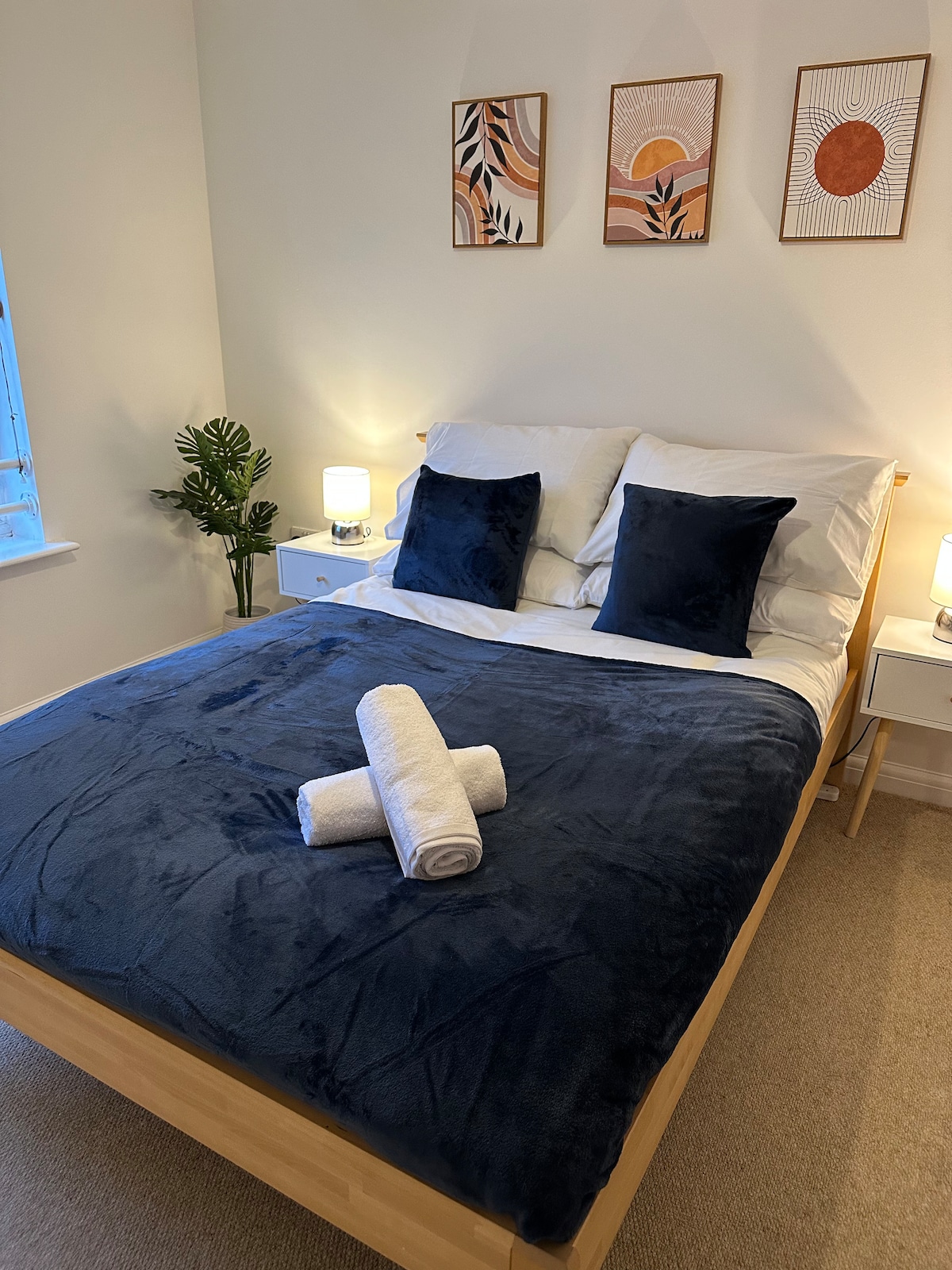 Ang pribadong access, pinto sa harap ay humahantong sa sala at mga pinto ng patyo sa hardin. Kumpletong kagamitan, sofa bed, desk, tsaa, mga pasilidad sa paggawa ng kape, microwave, bakal at libreng Wi - Fi. Sa itaas, ensuite shower room, double bed, dibdib ng mga drawer, aparador at TV. May pinto sa kusina ng pangunahing bahay na nag - uugnay sa annex at nananatiling naka - lock. Nirerespeto namin ang privacy ng aming mga bisita pero available kami kung kinakailangan. Maigsing lakad mula sa mga istasyon ng bayan/tren at supermarket, restaurant, at pub na matatagpuan malapit sa.