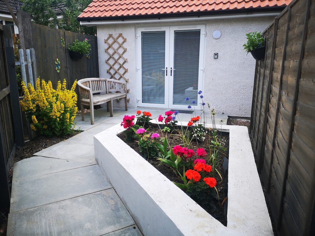 The pet friendly (two maximum), self contained unit is a detached annexe, internal dimensions are 6m x 4m. Set amidst beautifully Japanese gardens, it has modern amenities having been completed in May 2022. The guest house is ideally located in Central Scotland with motorway access to all areas North, South, East and West, 5 minutes drive from the location. The railway station at Falkirk High with a journey time of 20 minutes to both Glasgow and Edinburgh is a 10 minute drive.