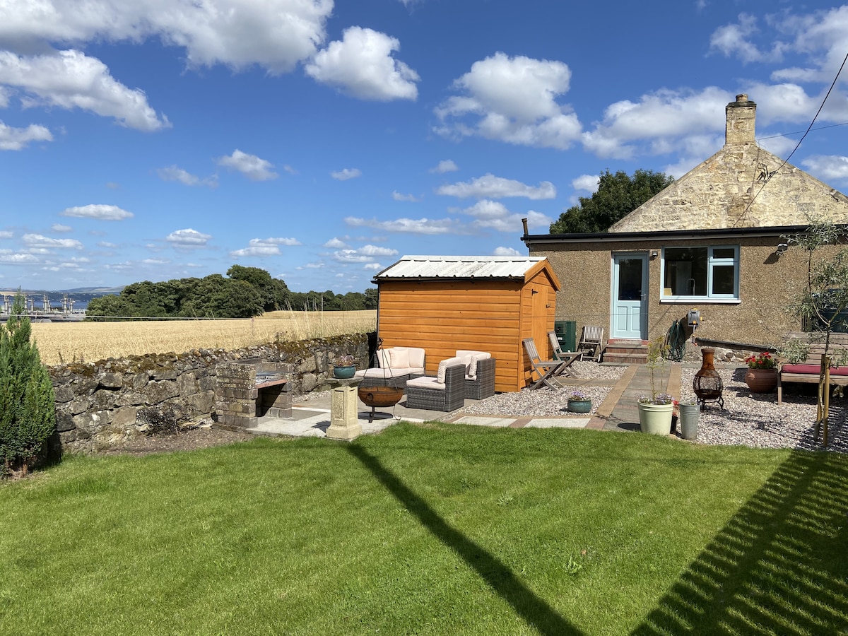 Peaceful cottage with stunning views of the Firth of the Forth to the right and over the water to the water to Fife. To the left dramatic dystopian drama of Grangemouth. A former small holding’ , renovated with a modern twist. Hike from the door along Antonines Wall or the John Muir way. Free off road parking and excellent road connections north, south east and west. Ideal base for action packed family holidays or to explore Edinburgh, Glasgow and Stirling. Dogs welcome