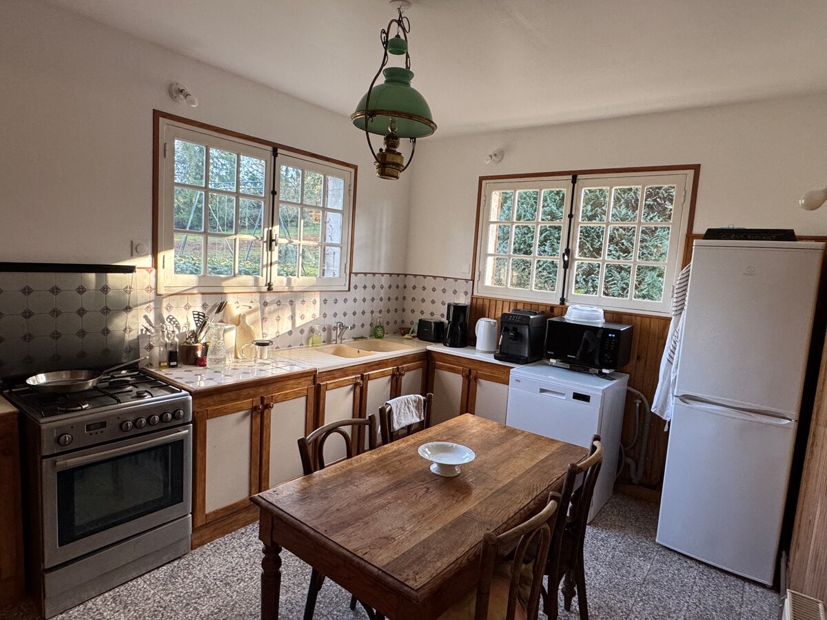 Para mailagay ka sa berdeng malapit sa Paris, nagpapaupa kami ng tunay na Percheron farmhouse sa 1h40 sakay ng tren mula sa Paris - Montparnasse o 1h45 sakay ng kotse. Ang bagong bahay ay maaaring kumportableng tumanggap ng 5 tao (+mga sanggol). Available: mga sunbed, BBQ Weber, bisikleta, apoy sa kahoy, raclette party, Wii console... Nakabakod ang malaking pribadong hardin ng mga puno ng sentenaryo at prutas. Mga pakete para sa pangangalaga ng sanggol o aso Maraming aktibidad at outing sa malapit Teleworking: 500 MB/s fiber