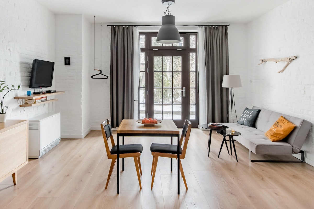 Isang maganda at atmospheric na apartment sa isang natatanging lugar na may A/C. Isang kahanga - hangang, kakaibang gusali na may kapaligiran na itinayo sa mga pader ng dating planta ng kuryente ng munisipalidad. 24/7 na security guarded. 600 MB Internet. Matatagpuan ang apartment sa gitna ng Kazimierz, 40 m2, na binubuo ng maluwang na kuwartong may maliit na kusina, silid - tulugan, banyo, at bulwagan. Isang atmospheric, napakatahimik na apartment. High speed internet 600 MB at isang computer working place.