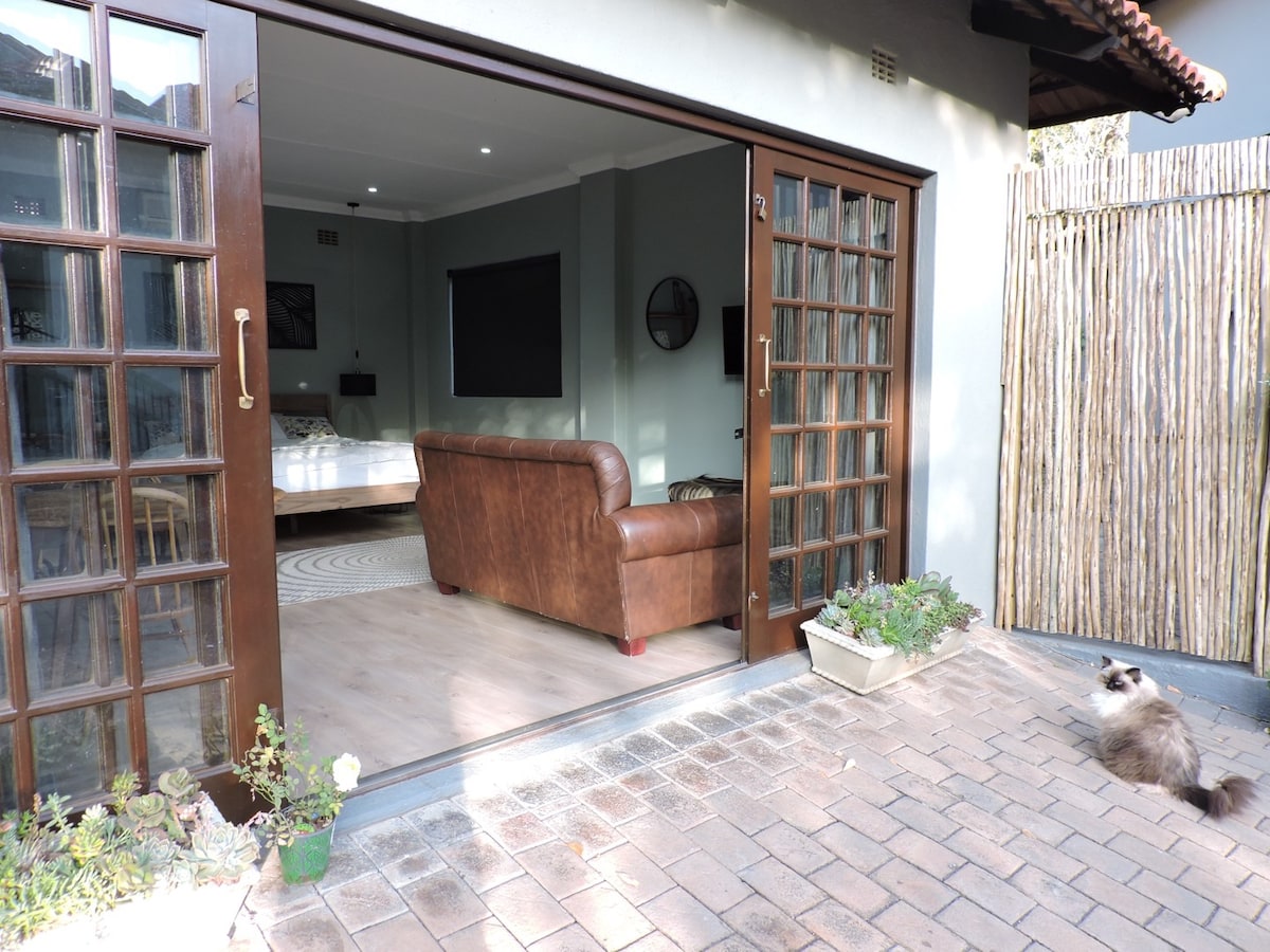 Tuklasin ang pagiging simple at kaginhawaan na may limitadong epekto ng loadshedding sa African Sunset, na perpekto para sa mga propesyonal at biyahero. Matatagpuan sa Nelspruit, ang aming bukas at komportableng espasyo ay nangangako ng pahinga. May madaling access sa Mediclinic, N4, Kaapschehoop at Kruger National Park, ito ay isang perpektong stopover. Masiyahan sa mga tanawin at kalinisan ng bushveld sa gitna ng isang residensyal na lugar ng Nelspruit. Ang dalawang yunit sa itaas ng garahe ay may queen size na higaan at sariling pasukan at banyo.