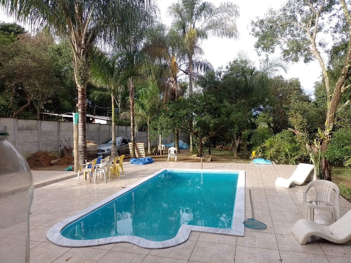 Magrelaks sa aming lugar, isang tunay na kanlungan ng kapayapaan at kaginhawaan! May malaking lugar, nag - aalok kami ng pool, barbecue, freezer, kalan ng kahoy at perpektong lugar para sa paglilibang. Mainam para sa mga pamilya at kaibigan na gustong magpahinga sa tahimik na kapaligiran, nang hindi nawawalan ng kaginhawaan. Gumawa ng mga di malilimutang alaala. Narito ang perpektong pahingahan mo, na naghihintay sa iyong pagbisita! Rancho na matatagpuan sa Lake Portal sa Ijaci Wi‑Fi, Smart TV na may Disney+, basta manood ka lang. Mayroon itong 3 silid - tulugan, 3 banyo