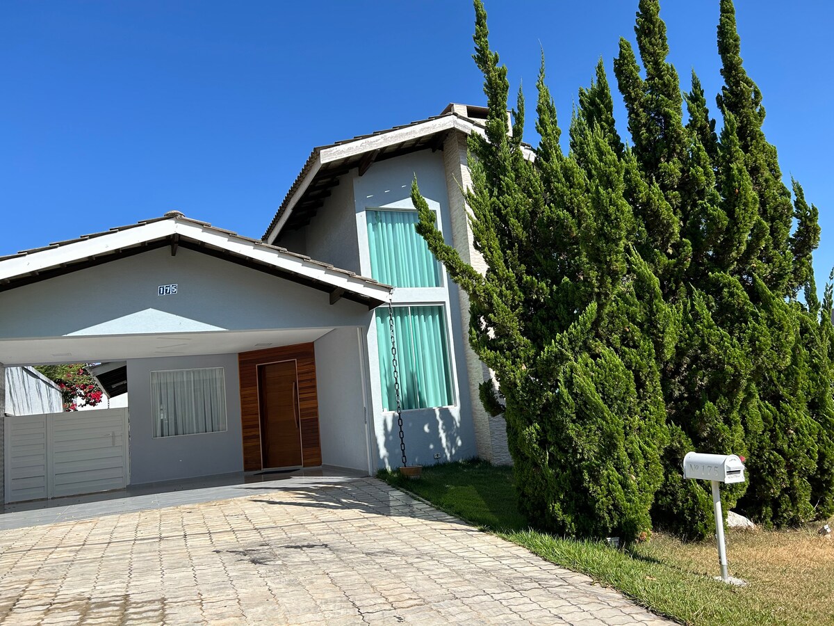 Magandang bahay na may ganap na paglilibang sa Atibaia, naka - air condition na pool, 600 metro mula sa pangunahing abenida ng lungsod. Malapit sa mga lawa, mainam para sa pamamasyal sa isang high - end na kapitbahayan. Bahay na may pool, billiards, ping pong, fire pit, barbecue, buong kusina, air - conditioning sa lahat ng kuwarto, 4 na silid - tulugan, 5 banyo, panlabas na lugar na may kalan at refrigerator. Halika at tangkilikin ang isa sa mga pinakamahusay na klima sa mundo, 1 oras mula sa São Paulo, magandang tanawin ng malaking bato at ang makahoy na panlabas na lugar, bilang karagdagan sa magandang paglubog ng araw.