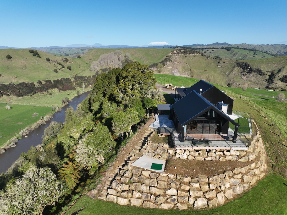 Ang lokasyong ito ay kumakatawan sa ilan sa mga pinakamahusay na tanawin ng kanayunan sa New Zealand. Ang cabin ay matatagpuan sa mga bangko ng kilala sa mundo na trout fishing river sa Wanganui. Sa isang malinaw na araw mayroon kang mga kahanga - hangang tanawin ng Mts Ruapehu at Ngaruahoe, at isang sulyap ng Tongariro. Eksklusibo para sa iyo ang cabin at mga kapaligiran para ma - enjoy mo dahil walang malapit na kapitbahay.