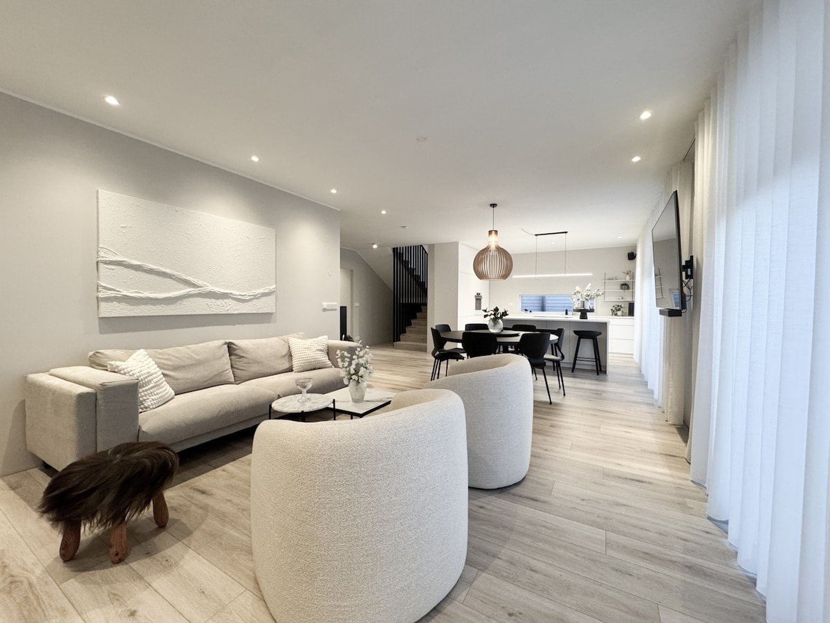 Mga natatanging vibes na may gym, sauna, at hot tub. 131 sqm / 1410 sqft na may isang malaking silid - tulugan at dalawang mas maliit na silid - tulugan. Isa sa mga pinakanatatanging aspeto ang napakalaking banyo na may Sauna at maliit na Gym. Sa bawat lugar, may matalinong ilaw at sistema ng multi - room ng Sonos. Ang paglalakad sa likod ay humahantong sa hot tub at bbq, na parehong kasama ng apartment.