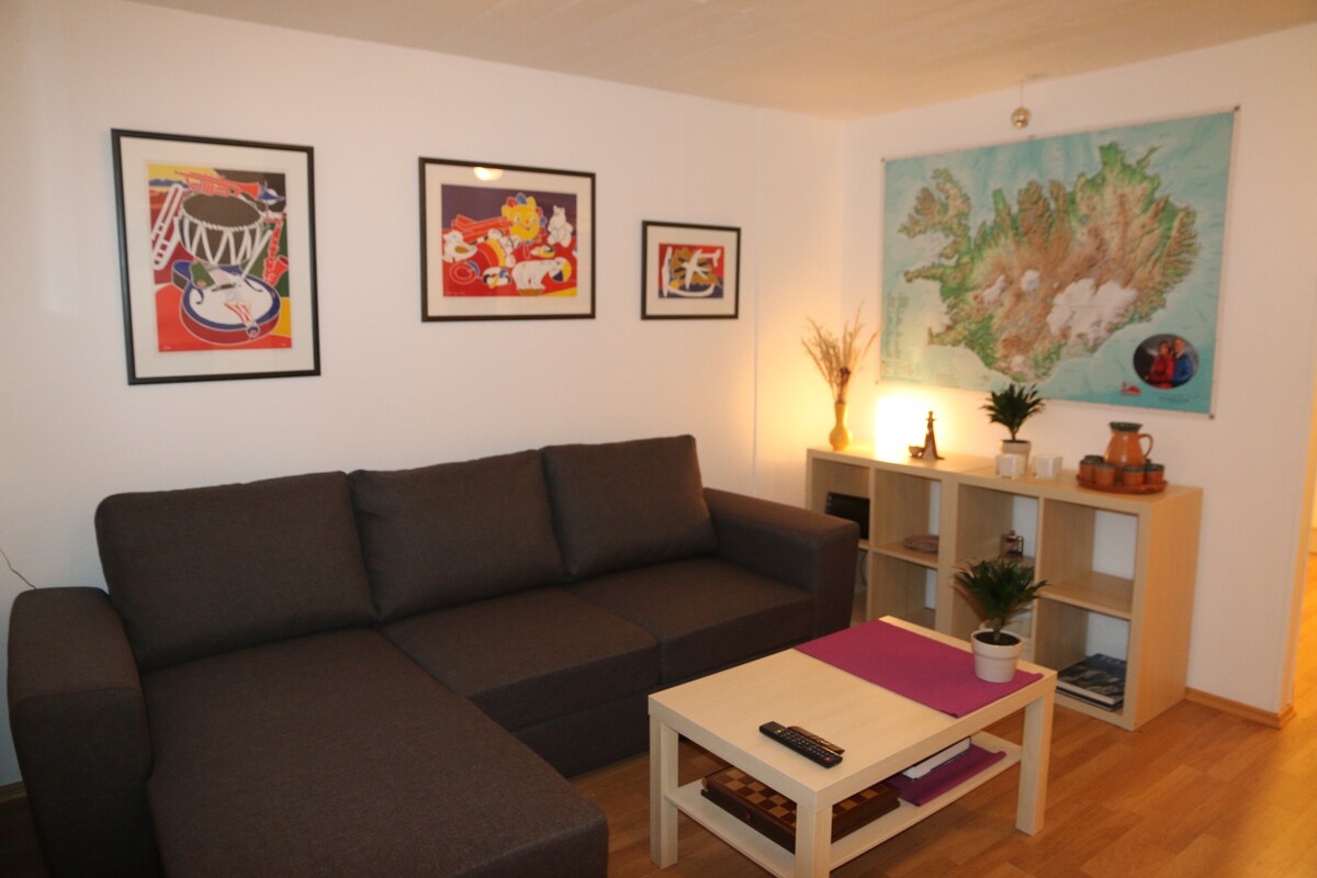 Maaliwalas na apartment sa isang mapayapang lugar, 25 -30 minuto lamang ang layo mula sa sentro ng lungsod. Madaling mapupuntahan ang Mount. Esjan na may maraming trail at nakamamanghang tanawin ng timog - kanlurang bahagi ng bansa. Narito mayroon kaming mga hilagang ilaw na sumasayaw sa amin at sa paligid ng magagandang tanawin ng bundok sa mga buwan ng taglamig. Sa panahon ng tag - araw, masisiyahan ka sa kamangha - manghang at natatanging araw sa hatinggabi sa dalisay na kalikasan ng Iceland. Nag - aalok din kami ng mga guided hike at northern light tour kapag hiniling.